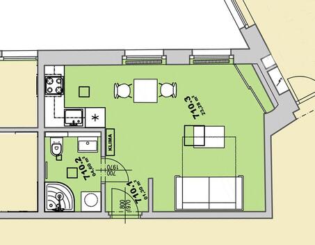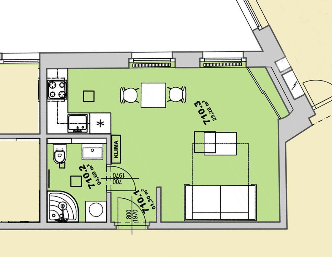 Pronájem bytu 1+KK v přímém centru Brna, na Jakubském náměstí. Velmi pěkný byt s kuchyňským koutem a příslušenstvím, plně klimatizovaný. Plocha bytu 30 m2: pokoj, kuchyňský kout, koupelna. Byt je ve 4. patře zrekonstruovaného cihlového domu s výtahem, novostavba z roku 2016. Vybavení: kuchyňská linka se spotřebiči, v koupelně sprchový box, v pokoji vestavěná skříň, klimatizace. Byt je možné pronajmout zařízený, anebo bez vybavení. Nájemné měsíčně 17750 Kč + služby a energie 3750 Kč. Za další vybavení nad rámec bude k nájemnému připočtena částka 1000 Kč. V ceně je internet 1000Mb/s. Majitelé žádají kauci - jistotu ve výši dvou měsíčních plateb. Platí se provize realitní kanceláři. 1+KK 30 m2 klimatizace, internet