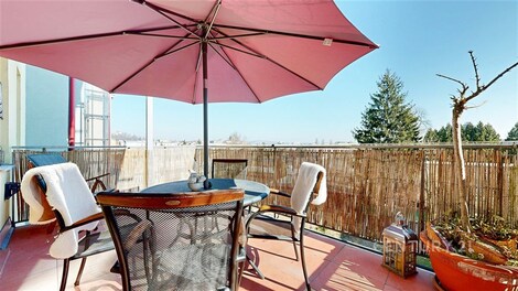 Exkluzivně nabízíme k prodeji komfortní prostorný byt dispozice 3+1 s celkovou výměrou 125,4 m2, v atraktivní lokalitě městské části Brno - Štýřice, v ulici Vídeňská, s terasou, infrasaunou a podílovým vlastnictvím (1/11) společné zahrady. Vnitřní užitná plocha bytu: 104,3 m2. Plocha terasy: 12,2 m2. Plocha zděného sklepu: 8,9 m2. Výměra zahrady: 435 m2. Kompaktní dispozice bytu nabízí samostatné vstupy z prostorné haly do všech pokojů, šatny, rekonstruované koupelny a odděleného WC. V případě potřeby lze zpřístupnit nyní sádrokatronem zaslepené dveře mezi místnostmi 5 a 6 (viz 3D plánek ve fotografiích). Z kuchyně se pak vstupuje na terasu s nádherným výhledem na Petrov, Špilberk a stadion SK Moravská Slavia Brno. Vybavení obývacího pokoje saunou, samostatná šatna, prostorná terasa, velký sklep i podíl na společně užívané zahradě, umocňují komfort bydlení v této účelně řešené bytové jednotce. Dům s 2 roky novým výtahem se nachází v oblíbené lokalitě, přímo u zastávky MHD se skvělým spojením do centra města a okolních lokalit. V okolí je plná občanská vybavenost - obchody, restaurace a další služby. Přátelské sousedské vztahy přispívají k příjemnému a klidnému bydlení. 200 m od domu k dispozici volné městské podzemní garáže k pronájmu. V blízkosti dále nemocnice (250 m), prestižní spádová jazyková ZŠ Bakalka (480 m), mateřská škola Vídeňská (270 m), cyklostezka podél řeky Svratky (350 m) a vrch Červený kopec (800 m) se stejnojmennou národní přírodní památkou. D1 vzdálená jen 2,5 km, centrum města a hlavní nádraží pouhých 1,6 km.