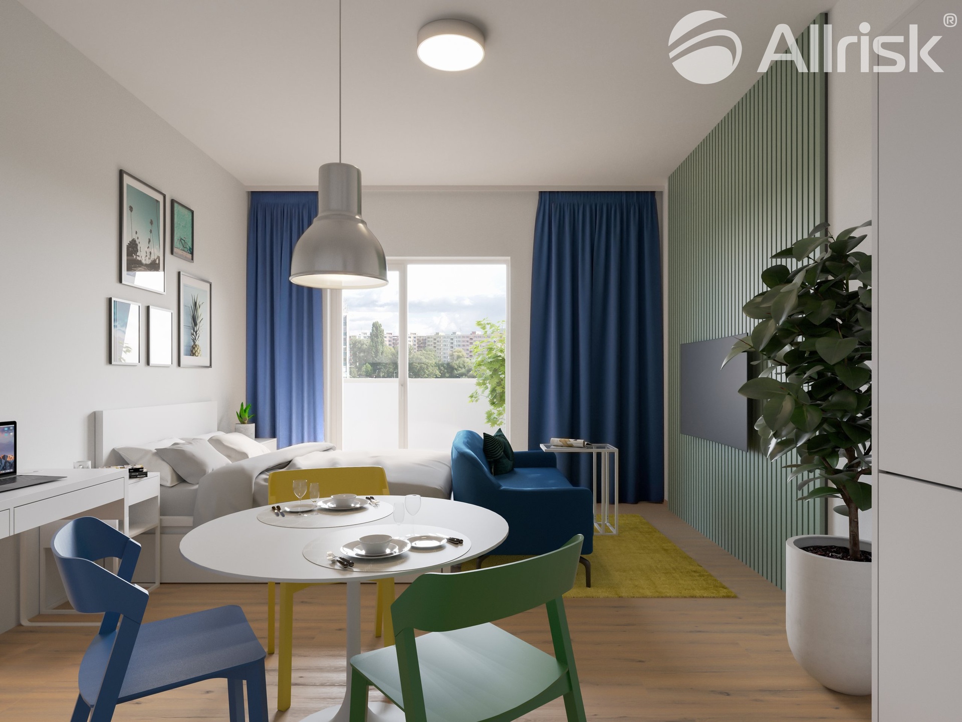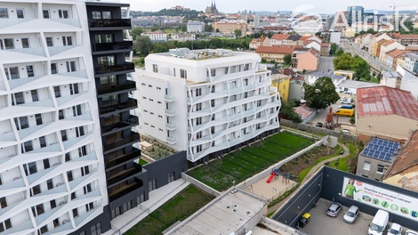 PRONÁJEM JEDNOTKY 1KK SE ZAHRADOU 69,4 m2 - PROPOJENÍ BYDLENÍ S PODNIKÁNÍM - ODPOČET DPH - NOVOSTAVBA BRNO - ALLRISK MERIDIEM, Brno