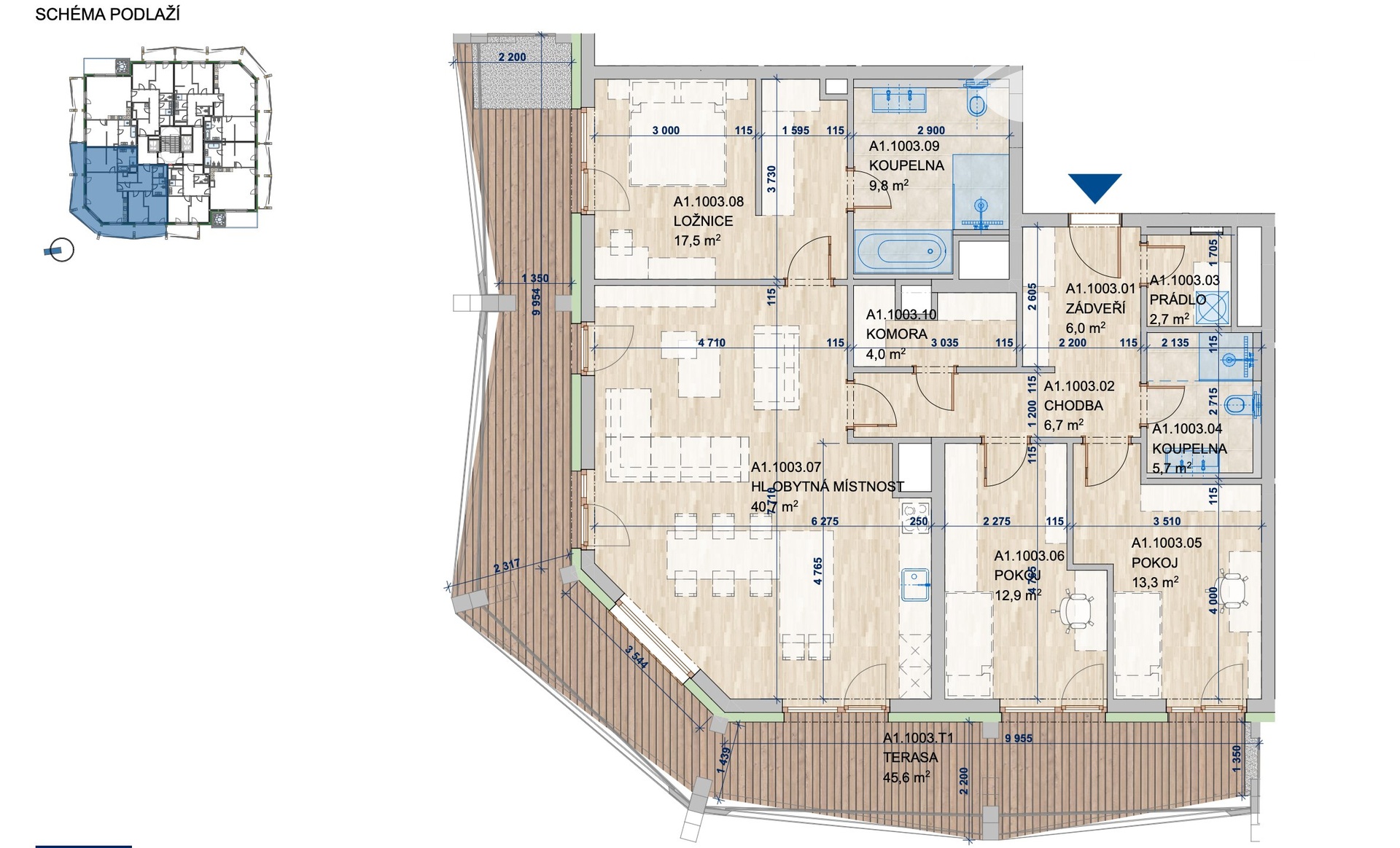 PRONÁJEM LUXUSNÍHO BYTU 4+KK S TERASOU -170 m2, NOVOSTAVBA BRNO - ALLRISK MERIDIEM, Brno