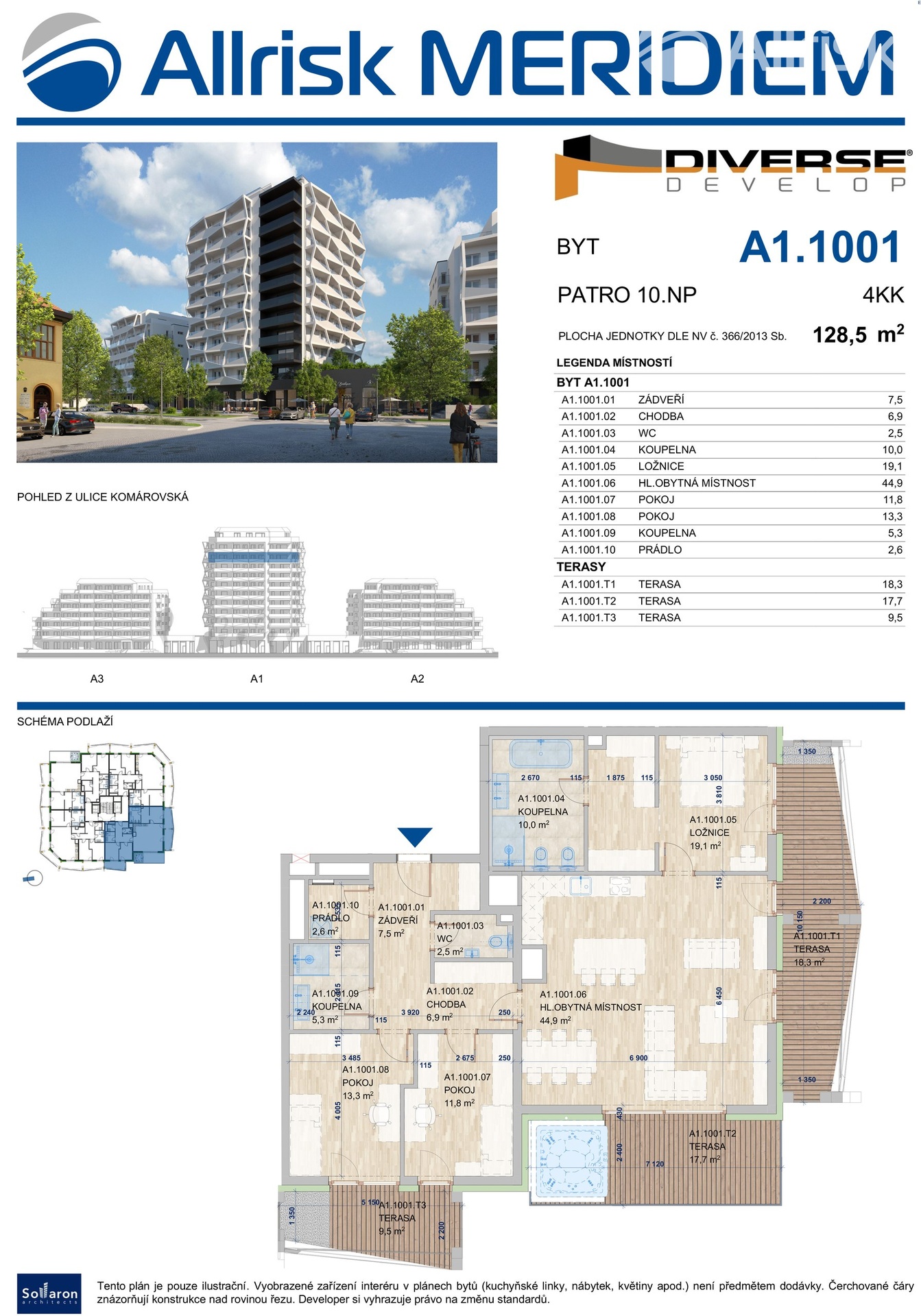 Hledáte nadstandardní bydlení, které nabízí prostor, komfort, soukromí - a k tomu dechberoucí výhled? Tento moderní byt 4KK 173 m2, umístěný v 10. podlaží, Vás nadchne úchvatnou vyhlídkou na celé Brno a jeho dominanty. Městské panorama budete mít doslova jako na dlani - ve dne i v noci. Byt se nachází v novostavbě prestižního projektu Allrisk MERIDIEM, který vzniká na rozhraní ulic Svatopetrská a Komárovská, v dynamicky se rozvíjející čtvrti Trnitá. Tato lokalita je součástí největší urbanistické proměny v historii Brna, která propojuje moderní architekturu s novým životním stylem v blízkosti centra města. Projekt nabízí ideální kombinaci klidného prostředí, městské infrastruktury a vynikající dopravní dostupnosti. Součástí bytu jsou také terasy o celkové ploše 45 m2, ideální pro relaxaci, slunění nebo setkávání s přáteli. Možnost umístění vířivky dodá bydlení skutečný nádech luxusu. Tento byt je perfektní volbou pro ty, kteří si potrpí na kvalitu, styl a výjimečný životní prostor. Byt se nachází v prostřední budově A1, která se pyšní výjimečným hlavním vstupem, který podtrhuje celkový luxus projektu. Vstupní prostor je obložen velkoformátovými obklady a doplněn reprezentativním vysokým stropem o výšce 5 metrů, což vytváří působivý dojem hned při příchodu. Atmosféra elegantního lobby umocňuje celkový prestižní charakter celé novostavby. HLAVNÍ BENEFITY S PUNCEM LUXUSU: - velkorysý obývací prostor (44,9 m2) plynule navazuje na elegantní kuchyňský kout - ideální pro rodinný život i reprezentativní společenské chvíle - hlavní ložnice s vlastní šatnou a koupelnou - vybavenou velkoformátovými obklady, vanou, sprchovým koutem, toaletou a designovým zařizovacím vybavením. Použity byly kvalitní materiály a prvky prémiových značek, jako je Villeroy & Boch a Hansgrohe. - druhý a třetí pokoj nabízejí flexibilní využití - ložnice, pracovna či dětský pokoj - druhá koupelna se sprchovým koutem a samostatné WC zajišťují komfort pro každodenní provoz i hosty - praktická prádelna diskrétně oddělená od obytné části - elektrické žaluzie ve všech místnostech pro pohodlnou regulaci světla a soukromí - klimatizace pro maximální tepelný komfort v letních měsících - velká francouzská okna - velkoformátové prosklené plochy přinášejí dostatek denního světla a vytvářejí přirozené propojení interiéru s venkovním prostorem, což umocňuje pocit vzdušnosti a volnosti v celém bytě. BYT DISPONUJE TŘEMI TERASAMI O CELKOVÉ PLOŠE 45,4 M2: - hlavní terasa (17,7 m2) je ideální pro venkovní posezení či umístění vířivky - nabízí klid, soukromí a prostor pro odpočinek - druhá terasa (18,4 m2) propojuje ložnici s obývacím prostorem - skvělé řešení pro ranní kávu i večerní relax - třetí terasa (9,3 m2) propojuje dvě samostatné ložnice, což zajišťuje přirozené světlo a příjemný kontakt s exteriérem V CENĚ BYTU - klimatizace - elektrické žaluzie - koupelny jsou vybaveny kvalitní sanitární technikou značky Villeroy & Boch a designovými bateriemi Hansgrohe, které zaručují vysoký komfort a nadčasový vzhled. - velkoformátové obklady v koupelně - kuchyňská linka se spotřebiči LOKALITA: - výborná dostupnost MHD, centrum Brna za pár minut - skvělá a rychlá dostupnost autem na dálnici směr Praha, Vídeň i Ostrava - rekreační možnosti: cyklostezka, biotop, sportovní centrum, parky - kompletní občanská vybavenost v docházkové vzdálenosti (potraviny, lékárna, školky, školy atd. ) Byt nabízí maximální pohodlí pro rodinu i náročného jednotlivce. Nachází se v klidné a moderní lokalitě s výbornou dostupností do centra města. ZAUJALA VÁS TATO NABÍDKA? Neváhejte mě kontaktovat prostřednictvím formuláře u této nabídky - po jeho vyplnění Vás budu co nejdříve kontaktovat. Ráda Vám jednotku na schůzce podrobně představím, doplním všechny užitečné informace a zajistím osobní prohlídku. Společně projdeme vše důležité, abyste si mohli udělat jasnou představu, zda je tato nemovitost tou pravou volbou právě pro Vás. Věřím, že Vás tato byt zaujme, a pokud by přece jen nesplňovala všechna Vaše očekávání, ráda Vám představím i další vhodné možnosti k pronájmu či koupi v rámci objektu. K NASTĚHOVÁNÍ: ZÁŘÍ 2025 CENA NÁJMU: na vyžádání. Neváhejte mě kontaktovat prostřednictvím formuláře u této nabídky - ráda Vám poskytnu veškeré informace a zodpovím Vaše dotazy. KATEGORIE: Pronájem, novostavba, byt VYBAVENÍ BYTU: kuchyně a další vybavení dle domluvy LOKALITA: Brno - Komárovská UŽITNÁ PLOCHA: 169,4 m2 (včetně tří teras o celkové ploše 45,4 m2) UMÍSTĚNÍ JEDNOTKY: 10. nadzemní podlaží - nádherný výhled na celé Brno ORIENTACE BYTU: jihozápadní - ideální pro dostatek denního světla a krásné západy slunce PARKOVACÍ STÁNÍ: možnost pronájmu až dvou parkovacích stání a sklepní koje, která se nachází přímo v domě, v 1. podzemním podlaží - pohodlný a bezpečný přístup výtahem přímo k bytu. Pokud jste si nevybrali z uveřejněné nabídky, zadejte nám prosím Vaši poptávku a my se pokusíme najít odpovídající nemovitost.