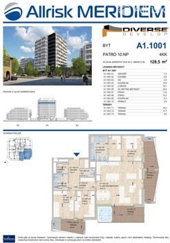 PRONÁJEM LUXUSNÍHO BYTU 4+KK S TERASOU A MOŽNOSTÍ VÍŘIVKY - 173 m2 , NOVOSTAVBA BRNO - ALLRISK MERIDIEM, Brno