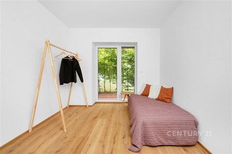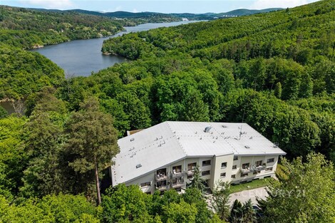 Vítám vás v tomto exkluzivním bytě 3+kk o rozloze 89 m2, ke kterému náleží tři terasy o celkové ploše přibližně 35 m2, přístupné přímo z obytných místností. Byt je umístěn v přízemí moderního domu v atraktivní lokalitě Brno - Bystrc, Jelenice. Nachází se v srdci přírody, pouhých 120 metrů od Brněnské přehrady, na okraji lesa. Propojení komfortu a přírody Každá obytná místnost má vlastní dřevěnou terasu s výhledem do zeleně, kde si můžete užívat klid, soukromí a ničím nerušený kontakt s okolní přírodou. Z ložnice je nádherný výhled na Brněnskou přehradu - v zimě otevřený, v létě chráněný svěží zelení lesa. Velká francouzská okna zajišťují dostatek denního světla a maximální propojení interiéru s exteriérem. Moderní interiér a nadstandardní vybavení Byt byl dokončen v roce 2021 s důrazem na kvalitu použitých materiálů a maximální komfort. Interiéry jsou ve stavu novostavby. Srdcem bytu je kuchyň na míru od renomované firmy Klvaňa, vybavená prémiovými spotřebiči Miele a Liebherr. Podlahy z přírodního kartáčovaného dubu jsou pouze olejované, aby vynikla jejich přirozená kresba. Obývací část zdobí originální kamenná stěna z místního přírodního kamene, která propojuje interiér s okolní krajinou. Koupelna v čistém spa stylu je vybavena sanitou Hansgrohe a Villeroy & Boch, prostorným sprchovým koutem, přípravou pro volně stojící vanu a elegantním obkladem z italského kamene. Komfortní klima a nízké náklady O tepelný komfort se stará nové tepelné čerpadlo pro celý dům, podlahové vytápění s individuální regulací v každé místnosti a energetická náročnost budovy třídy B. Dům má vlastní studnu, což zajišťuje energetickou soběstačnost a nízké provozní náklady. Bezpečnost zajišťuje kamerový systém a bezpečnostní fólie na oknech s certifikací. Součástí objektu je i útulný sklípek - po dohodě se správcem možno využívat na společenské akce. Praktické detaily a úložné prostory K bytu náleží prostorná sklepní kóje (4,7 m2) se zabezpečením dvojitým zámkem, multifunkční místnost (šatna/komora/spíž), vestavná skříň na míru a parkovací místo č. 7 přímo před hlavním vchodem do domu. V zadní části domu jsou k dispozici další parkovací stání s možností dokoupení. V domě je uzamykatelná kolárna a kontejnery na tříděný odpad. Lokalita a dostupnost Jelenice nabízí jedinečné propojení moderního bydlení a aktivního životního stylu v přírodě. Přímo za domem najdete cyklostezky, turistické trasy, plážový volejbal, možnost koupání v přehradě nebo dopravu parníkem. Zastávka Jelenice je jen pár kroků od domu - autobusová linka č. 303 vás dopraví do centra Brna každých 30 minut ve špičce. Každodenní pohodlí doplňuje dostupnost rozvozových služeb (Rohlík, Košík, restaurace). Tento byt je ideální volbou pro ty, kteří hledají moderní, komfortní a bezpečné bydlení v těsném spojení s přírodou, ale zároveň s výbornou dostupností do centra města. Tak co říkáte na tento moderní byt? Ozvěte se mi - rád vám nemovitost ukážu osobně!