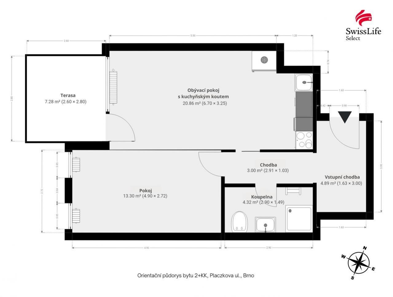 Hledáte bydlení v centru Brna? Připravil jsme pro vás nájem bytu o velikosti 2+KK o užitné ploše 47 m2 s terasou 7 m2 a vlastním parkovacím místě přímo v domě. Byt najdete ve 4. nadzemním podlaží nového bytového domu v centru Brna, hned vedle Galerie Vaňkovka. Měsíční nájemné 18.900 Kč, měsíční nájemné za garážové parkovací stání 1.600 Kč, měsíční záloha za energie a služby 4.200 Kč, elektřina 1.500 Kč, zálohy pro parkovací stání 750 Kč. Jistota (kauce) ve výši 40.000 Kč + odměna realitní kanceláře. Prohlídky budou možné od 15.09. 2025. Bytový komplex byl kolaudovaný v roce 2022 a umožňuje kvalitní bydlení v centru města. Byt je složen ze vstupní chodby, obývacího pokoje s velkou terasou, kuchyňského koutu, samostatné ložnice a koupelny se sprchou a toaletou. Kuchyně je vybavena moderní kuchyňskou linkou se všemi potřebnými spotřebiči. Najdete zde indukční varnou desku, horkovzdušnou troubu, myčku nádobí a kombinovanou chladničku. V obou pokojích i chodbě je položena plovoucí podlaha. Z větší části krytá terasa umožňuje užívat si třeba podvečerní kávu se zapadajícím sluncem. Hezky provedená a účelně zařízená koupelna je vybavena zařizovací Villeroy & Boch, baterie Grohe. Do domu se vstupuje s použitím bezpečnostního čipu. Zvýšenou bezpečnost nabízí také byt. Má instalované bezpečnostní dveře s více bodovým uzamykacím systémem. Díky tomu, že se byt nachází v centru města máte k dispozici veškerou občanskou vybavenost. Součástí komplexu je příjemný odpočinkový vnitroblok, který je přístupný pouze uživatelům bytů. Neváhejte zavolat, domluvíme se na všech detailech a prohlídce. Nejlépe udělá, když se přijdete přesvědčit na vlastní oči. Radim Macháček