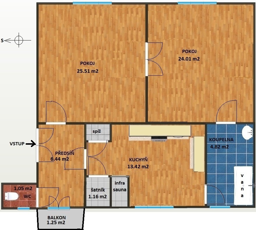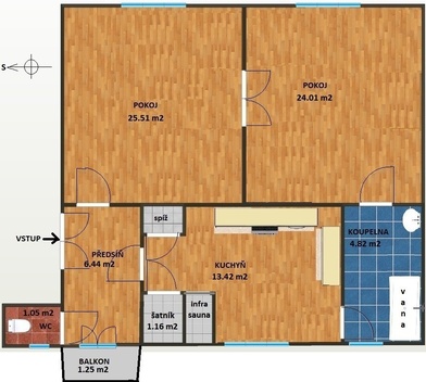Některé byty mají jen metr čtvereční a stěny. Tento má navíc i příběh. Nabízím k prodeji prostorný a slunný byt o dispozici 2+1 v osobním vlastnictví, nacházející se ve 2. nadzemním podlaží třípodlažního cihlového domu bez výtahu. Byt se nachází na ulici Výpravní, Brno - Horní Heršpice. Celková užitná plocha činí cca 84 m2, z toho balkon 1,25 m2, sklep 7,05 m, plocha bytu tedy 76 m2. Dále k bytu náleží podíl na půdním prostoru o velikosti cca 37 m2. Orientace na východ a západ zajišťuje dostatek denního světla po celý den. Vysoké stropy (2,9 m) dodávají bytu vzdušnost. Dispozici tvoří dva prostorné pokoje (24 m2 a 25,5 m2) propojené dvoukřídlými dveřmi. Jeden z pokojů má vstup z chodby, druhý z koupelny nebo z prvního pokoje. Kuchyně s vestavěnou spíží má plochu 13,4 m2. Zde najdete dostatek úložního prostoru, v kuchyni tak nezbytného. Koupelna s vanou 4,8 m2 je přístupná jednak z kuchyně nebo z pokoje. Samostatné WC 1 m2. Dále nový majitel bude mít k dispozici šatnu 1,1 m2. Předsíň měří 6,4 m2 a je z něj taky vstup na balkon s výhledem do klidných zahrádek. Byt prošel částečnou rekonstrukcí v letech 2001-2009: koupelna, WC, kuchyně, elektroinstalace v mědi. Okna euro dřevěné dvojskla a kastlové dřevěné trojskla., rozvody vody v plastu. Vytápění je řešeno vlastním elektrickým nebo plynovým kotlem, ohřev vody zajišťuje bojler nebo plyn. V bytě je zaveden optický internet (Supernet.cz) a zásuvka pro DVB-T2. Podlahy jsou kombinované - v pokojích krásné zachované původní dubové parkety, v ostatních místnostech lino a dlažba. Byt je v udržovaném stavu, určený k okamžitému bydlení. Je vhodný taky jako investice na pronájem, například studentům a to i díky výborné dostupnosti do centra města. Dům pochází z roku 1928 a je architektonicky cenným dílem Eduarda Göttlichera. Jedná se o reprezentativní příklad brněnské meziválečné architektury. Cihlový objekt má silné zdi ( 90, 60,45 cm), sedlovou taškovou střechu a celkem 16 bytových jednotek. Mezi lety 2008-2022 proběhla rozsáhlá rekonstrukce: nová střecha, okna, vchodové dveře, komíny, rozvody, hromosvody, hydranty, zateplení stropů a úpravy společných prostor včetně sklepů. SVJ je bez dluhů. Energetická náročnost budovy: třída E. Bezproblémové parkování před domem. Lokalita nabízí klidné bydlení s výbornou dostupností do centra města - vlaková zastávka Horní Heršpice je vzdálena cca 200 m, do centra Brna je to přibližně 5 minut. V pěší dostupnosti je kompletní občanská vybavenost: MHD (zóna 101 - tramvaje č. 2 a 5, autobus č. 50), školy, školky, obchody (Albert, Hornbach, Bauhaus), sportoviště, cyklostezky, biotopové koupaliště, lezecké centrum Adama Ondry, AZ Tower, M-Palác a další. V okolí se nachází také mnoho pracovních příležitostí (ABB, Notino, Brno Business Park, H-Park). Rychlý nájezd na dálnice D1, D2 a D52. Parkování možné u domu. V případě zájmu o více informací nebo prohlídku mě neváhejte kontaktovat a domluvíme si termín prohlídku tohoto zajímavého bytu.