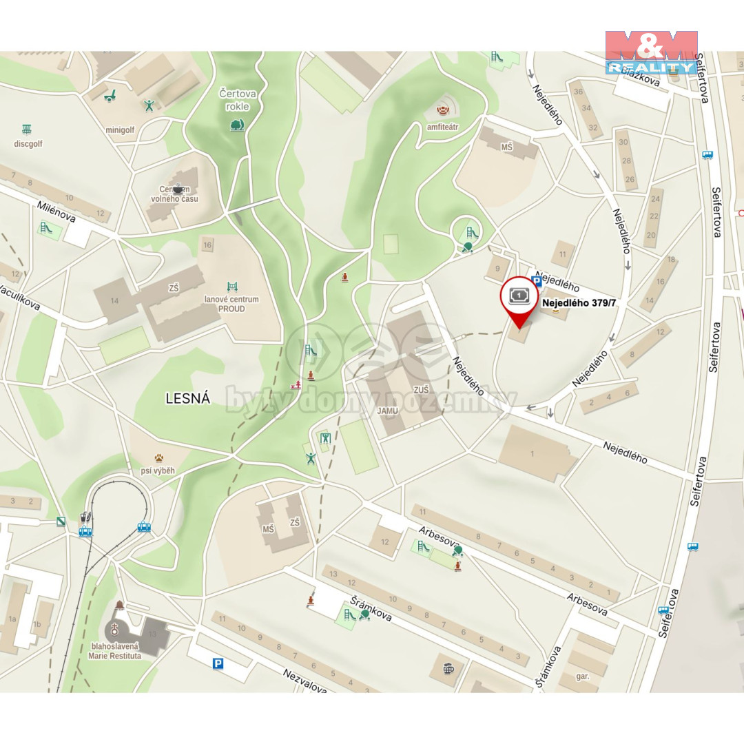 Pronájem bytu 3+1 s lodžií a sklepem v 11. podlaží panelového domu na ul. Nejedlého, Brno - Lesná. Byt je po částečné rekonstrukci: kuchyňská linka, koupelna s vanou, vymalován, částečně vybaven starším nábytkem. Dispozice: Po příchodu do bytu si můžete odložit věci v praktické komoře. Následuje první pokoj (13 m2), druhý pokoj (10 m2) a obývák (18 m2), ze kterého se vstupuje do kuchyně (7 m2) s lodžií (3 m2). Ta je vybavena plynovým sporákem, elektrickou troubou a ledničkou. V chodbě je prostorná vestavěná skříň. Orientace bytu na východ a jih nabízí krásný výhled na celé Brno. Klidná lokalita s výbornou dostupností - tramvaj č. 9 z Čertovy rokle vás doveze do centra za 30 minut. V okolí najdete kompletní občanskou vybavenost, MŠ, ZŠ, hřiště, obchody. Okolí nabízí také dostatek zeleně zvoucí k procházkám a k relaxaci. Ideální pro rodinu i páry hledající pohodlné bydlení s výhledem a klidem, a přesto na dosah centra města. Nevhodný pro studenty. Rádi vás uvidíme na prohlídce.