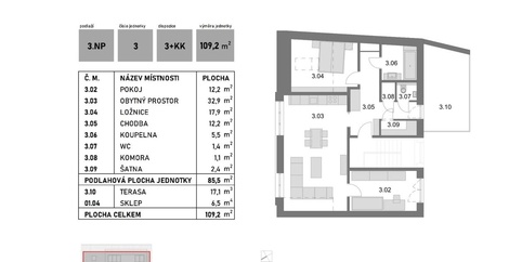 Prodej bytu 3+kk, 76 m2, Moravské Knínice s terasou