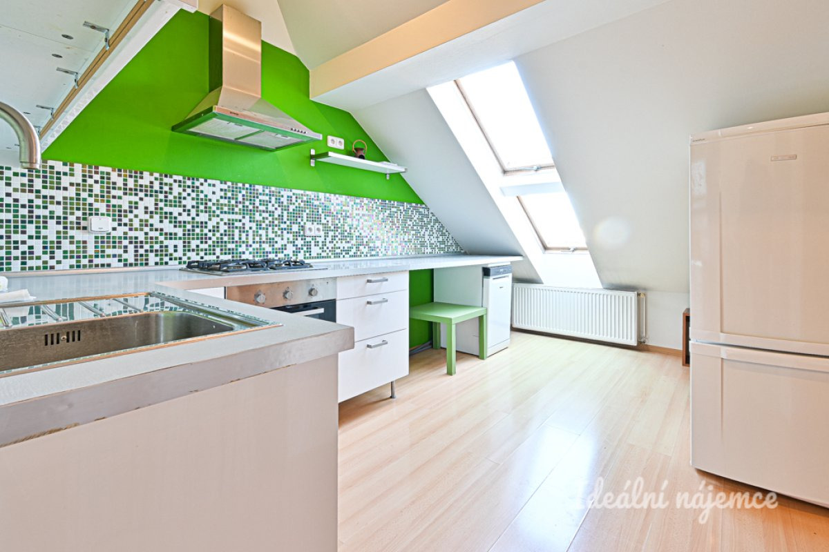 K dlouhodobému podnájmu nabízíme krásný podkrovní byt o dispozici 3+kk v oblíbené lokalitě Brno - Královo-Pole. Byt o celkové výměře 81 m2 se nachází v 5 patře cihlového domu bez výtahu. Bytový dům se nachází v těsné blízkosti veškeré občanské vybavenosti. Byt se nabízí částečně vybavený. Kuchyně disponuje lednicí, troubou, varnou deskou, digestoří a myčkou. V další místnosti je prostor pro obývací část nebo oddělenou jídelnu prozatím vybavenou jídelním stolem a židlemi. Další dva oddělené pokoje jsou vybaveny skříněmi, komodami, pracovními stoly a pohovkou. Součástí koupelny je vana, umyvadlo se skříňkou, a pračka. Toaleta je oddělená. V předsíni najdeme komodu s úložným prostorem. K bytu náleží sklepní koje a oddělená komora na patře. V okolí domu je základní a střední škola, kavárny, restaurace, supermarket Billa nebo Lidl, pošta atd. Dopravní dostupnost je zajištěna tramvajovou a autobusovou zastávkou, která je 3 minuty od domu. Byt je volný k nastěhování ihned! Uvedena energetická kategorie G, jelikož nemáme k dispozici PENB. Byt pronajímá Ideální nájemce - služba, se kterou budete bydlet bezstarostně a za férových podmínek. Když se něco přihodí, k dispozici jsou správci, kteří s vámi vše vyřeší. Pomůžeme s veškerou administrativou, s nastavením plateb a zajistíme vám speciální pojištění. Pojďte bydlet s námi!