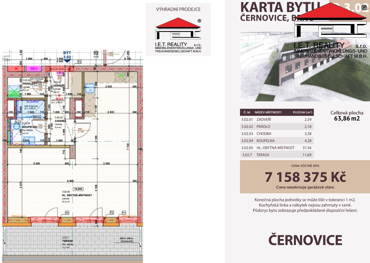 Nabízíme k prodeji nový byt s označením 3.02 o dispozici 2+kk v právě vznikajícím projektu Bytový dům Faměrovo náměstí v Brně. Byt o celkové výměře 63,86 m2 se nachází v moderní novostavbě s důrazem na kvalitní provedení, funkční dispozice a moderní městské bydlení. Nabízí kromě promyšlené vnitřní dispozice i prostornou terasu o výměře 11,69 m2, ideální pro ranní kávu, večerní relax nebo městskou zeleň v soukromí. K bytu dále náleží jedno parkovací místo v 1.NP za cenu 583.275,- Kč, které není zahrnuto v kupní ceně. Termín dokončení projektu 12/2026 Interiér bytu je navržen v nadčasovém stylu s příjemnými přírodními tóny. Podlahy obytných místností pokrývá vinyl v dekoru dubového dřeva, koupelna a WC jsou obloženy keramickou dlažbou v decentních odstínech šedé s designem betonu. Koupelna je vybavena sprchovým koutem s bezpečnostním sklem, závěsným WC systémem Geberit a moderní černou sanitou značky Nobless. Vstupní dveře jsou bezpečnostní, protipožární, v antracitovém provedení, vnitřní dveře bílé s lakovaným povrchem. Byt má připravené vývody pro kuchyňskou linku (elektřina, voda, kanalizace), centrální vytápění s vlastním měřením a přípravu pro internet a domácí telefon. Zveřejněné fotografie jsou pouze ilustrativní pro představu klienta, jak by se mohl byt vybavit. Samotný dům je navržen jako moderní betonová stavba s kvalitní fasádou a extenzivní zelenou střechou. Společné prostory jsou provedeny ve vysokém standardu - keramická dlažba, sádrové omítky, osvětlení na pohybová čidla, kolárna, technická místnost a samostatně řešená místnost pro odpad přímo v domě. V rámci projektu jsou k dispozici také garážová stání s dálkovým ovládáním. Lokalita nabízí klidné městské bydlení s výbornou dopravní dostupností a kompletní občanskou vybaveností v bezprostředním okolí. Projekt je vhodný pro vlastní bydlení i jako výhodná investice.
