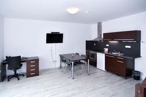 Kompletně zařízený byt. Pronájem na dobu od jednoho měsíce. Možnost pronájmu parkovacího místa za 46 EUR. Možnost pronájmu pračky za 23 EUR. V případě pronájmu firmě, možnost odpočtu DPH. Pro studijní i pracovní pobyty nabízíme pronájem plně zařízeného bytu 3+kk včetně kuchyňské linky a elektrospotřebičů v hotelovém komplexu eFi Palace Hotel v centru Brna. V rámci uzavřeného hotelového komplexu Vám bude k dispozici také fitness, wellness, restaurace, venkovní bazén a parkování na hlídaném parkovišti. Pronájem bytu je možný již od jednoho měsíce až po dobu několika let. Nájemcem může být fyzická osoba či firma. Plátci daně mohou využít odečtu DPH. Odjíždíte na léto domů? Nevadí, byt uvolníte na letní období, ve kterém nebudete nic platit, a od podzimu se můžete znovu nastěhovat do stejného bytu. Byt je o výměře 120,7 m2 a nachází se v 5. podlaží. Budova je opatřena výtahem i schodištěm. Byt má vstupní chodbu vybavenou šatní skříní, celoplošným zrcadlem a pokojovým trezorem. Z předsíně je vstup na samostané WC. Dále byt disponuje obývací částí s moderní vybavenou kuchyňskou linkou s pracovní deskou, podstavnou lednicí indesit, vestavěnou mikrovlnou trouba s grilem a horkovzdušnou troubou, varnou konvicí a jídelní soupravou s nádobím pro 6 osob. Pokoj je vybavený jídelním stolem se 6 židlemi, pracovním stolem s kancelářskou židlí a smart TV. Z pokoje je vstup na balkon. V horním patře se nachází dvě samostatné ložnice, v každé z nich jsou dvě komfortní postele, šatní skříň a pracovní stůl s židlí. Z jedné ložnice je přístup na prostornou terasu s posezením a výhledem na Petrov a Špilberk. Koupelna v horní části je s rohovou vanou, umyvadlem, bidetem, WC a topným žebříkem. WiFi připojení je v ceně pronájmu. V ceně měsíčního nájmu je kalkulována paušálně i cena za odběr elektřiny, vody a topení. Cena měsíčního nájmu zahrnuje úklid společných prostor a pronájem povlečení s jejich výměnou v rozsahu dvakrát měsíčně. Možnost pronájmu parkovacího stání v areálu komplexu je za 46 EUR měsíčně. Možnost pronájmu pračky umístěné v bytě za 23 EUR Kč měsíčně. Je požadovaná vratná kauce ve výši jednoho až dvou nájmů dle délky ubytování. Dlouhodobě ubytovaní nájemci mají v komplexu eFi Palace Hotelu zvýhodněný vstup do hotelového wellness a fitness centra, slevu 5 % v hotelové restauraci Stará Tkalcovna včetně možnosti nákupu zvýhodněných snídaní. Nabídka je vhodná pro pracovní či studijní pobyty, a to zejména pro oborové specialisty, vytížené vedoucí pracovníky, obchodní zástupce, podnikatelé či studenty vysokých škol. Skvělá dostupnost do centra Brna za necelých 10 minut pěší chůze nebo dvě zastávky MHD. Více informací na: www.efipalace.cz. Prohlídky bytů možné kdykoli po předchozí domluvě. Neplatíte provizi za zprostředkování pronájmu! <a href="https://www.eurobydleni.cz/byty/3_kk/brno/obec-zabrdovice/pronajem/"><strong>Pronájem bytu 3+kk Brno-město, Zábrdovice</strong></a>