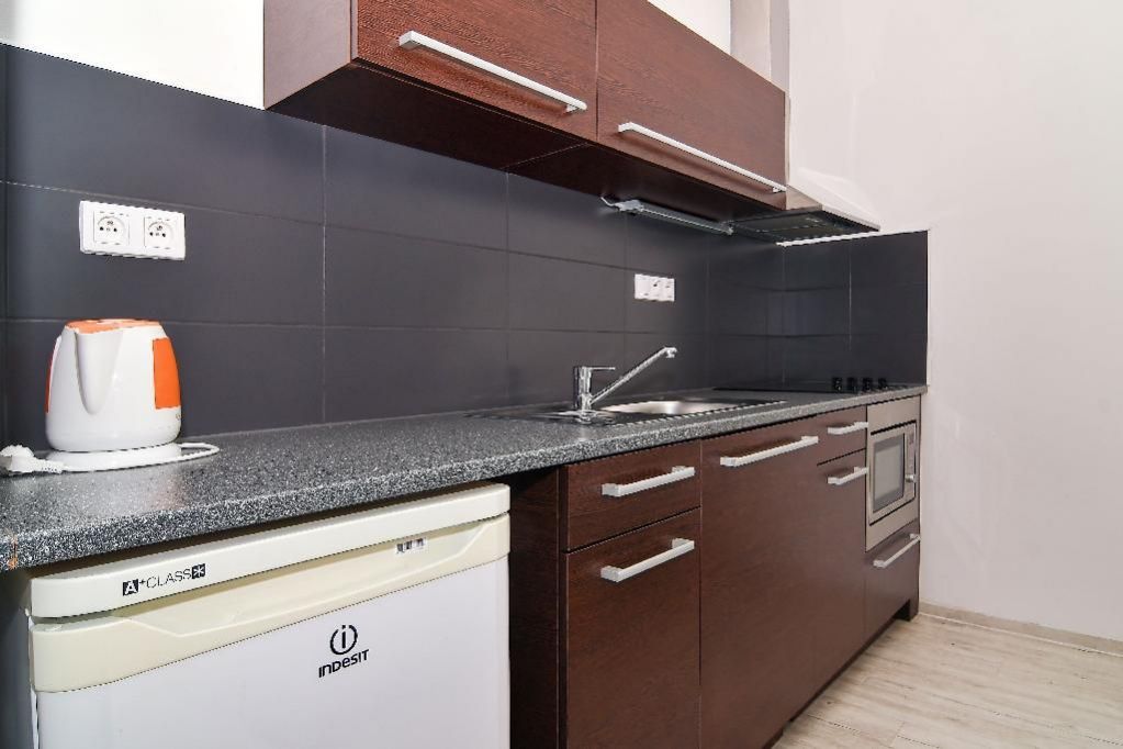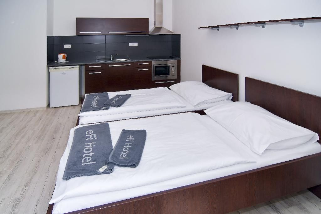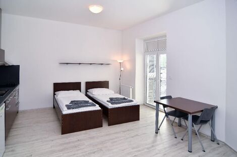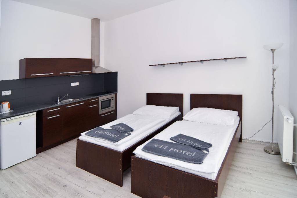 Kompletně zařízený byt. Pronájem na dobu od jednoho měsíce. Možnost pronájmu parkovacího místa za 46 EUR. Možnost pronájmu pračky za 23 EUR. V případě pronájmu firmě, možnost odpočtu DPH. Pro studijní i pracovní pobyty nabízíme pronájem plně zařízeného bytu 1+kk včetně kuchyňské linky a elektrospotřebičů v hotelovém komplexu eFi Palace Hotel v centru Brna. V rámci uzavřeného hotelového komplexu Vám bude k dispozici také fitness, wellness, restaurace, venkovní bazén a parkování na hlídaném parkovišti. Pronájem bytu je možný již od jednoho měsíce až po dobu několika let. Nájemcem může být fyzická osoba či firma. Plátci daně mohou využít odečtu DPH. Odjíždíte na léto domů? Nevadí, byt uvolníte na letní období, ve kterém nebudete nic platit, a od podzimu se můžete znovu nastěhovat do stejného bytu. Byty 1+kk jsou o výměře 36,48 m2 a nacházejí se ve 2.-5. podlaží. Budova je opatřena výtahem i schodištěm. Byt má vstupní chodbu vybavenou vysokou šatní skříní s celoplošným zrcadlem a pokojovým trezorem. Dále byt disponuje obývací částí s komfortními postelemi 90 x 200 cm, moderní vybavenou kuchyňskou linkou s pracovní deskou, podstavnou lednicí indesit, vestavěnou mikrovlnou trouba s grilem a horkovzdušnou troubou, varnou konvicí a jídelní soupravou s nádobím pro 2 osoby. Pokoj je vybavený jídelním stolem se 2 židlemi, pracovním stolem s kancelářskou židlí a smart TV. Koupelna je s vanou, umyvadlem, wc a topným žebříkem. WiFi připojení se standardní rychlostí dat je již v ceně pronájmu. V ceně měsíčního nájmu je kalkulována paušálně i cena za odběr elektřiny, vody a topení. Cena měsíčního nájmu zahrnuje úklid společných prostor a pronájem povlečení s jejich výměnou v rozsahu dvakrát měsíčně. Možnost pronájmu parkovacího stání v areálu komplexu je za 46 EUR měsíčně. Možnost pronájmu pračky umístěné v bytě za 23 EUR Kč měsíčně. Je požadovaná vratná kauce ve výši jednoho až dvou nájmů dle délky ubytování. Dlouhodobě ubytovaní nájemci mají v komplexu eFi Palace Hotelu zvýhodněný vstup do hotelového wellness&fitness centra, slevu 5 % v hotelové restauraci Stará Tkalcovna včetně možnosti nákupu zvýhodněných snídaní. Nabídka je vhodná pro pracovní či studijní pobyty, a to zejména pro oborové specialisty, vytížené vedoucí pracovníky, obchodní zástupce, podnikatelé či studenty vysokých škol. Skvělá dostupnost do centra Brna za necelých 10 minut pěší chůze nebo dvě zastávky MHD. Více informací na: www.efipalace.cz. Prohlídky bytů možné kdykoli po předchozí domluvě. Neplatíte provizi za zprostředkování pronájmu! <a href="https://www.eurobydleni.cz/byty/3_kk/brno/obec-zabrdovice/pronajem/"><strong>Pronájem bytu 3+kk Brno-město, Zábrdovice</strong></a>
