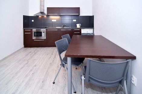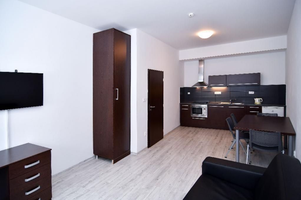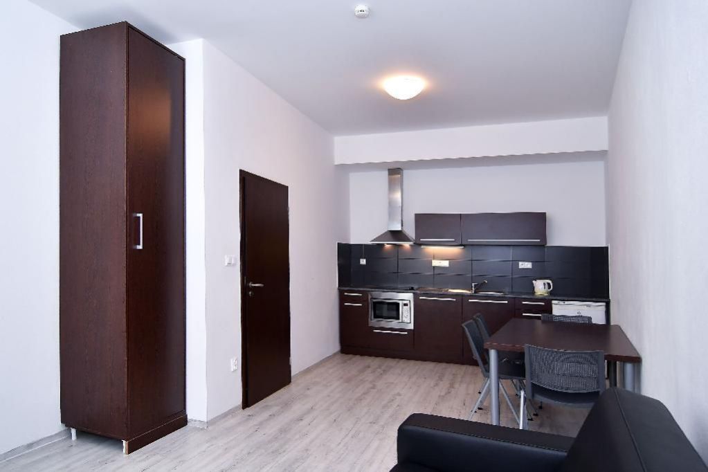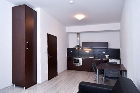 Kompletně zařízený byt. Pronájem na dobu od jednoho měsíce. Možnost pronájmu parkovacího místa za 46 EUR. Možnost pronájmu pračky za 23 EUR. V případě pronájmu firmě, možnost odpočtu DPH. Pro studijní i pracovní pobyty nabízíme pronájem plně zařízeného bytu 2+kk včetně kuchyňské linky a elektrospotřebičů v hotelovém komplexu eFi Palace Hotel v centru Brna. V rámci uzavřeného hotelového komplexu Vám bude k dispozici také fitness, wellness, restaurace, venkovní bazén a parkování na hlídaném parkovišti. Pronájem bytu je možný již od jednoho měsíce až po dobu několika let. Nájemcem může být fyzická osoba či firma. Plátci daně mohou využít odečtu DPH. Odjíždíte na léto domů? Nevadí, byt uvolníte na letní období, ve kterém nebudete nic platit, a od podzimu se můžete znovu nastěhovat do stejného bytu. Byty 2+kk jsou o výměře 45,09 až 46,3 m2 a nacházejí se ve 2.-5. podlaží. Budova je opatřena výtahem i schodištěm Byt má vstupní chodbu vybavenou vysokou šatní skříní s celoplošným zrcadlem a pokojovým trezorem. Dále byt disponuje obývací částí s rozkládací sofa, moderní vybavenou kuchyňskou linkou s pracovní deskou, podstavnou lednicí indesit, vestavěnou mikrovlnou trouba s grilem a horkovzdušnou troubou, varnou konvicí a jídelní soupravou s nádobím pro 4 osoby. Pokoj je vybavený jídelním stolem se 4 židlemi, pracovním stolem s kancelářskou židlí a smart TV. Ložnice je samostatná se 2 komfortními postelemi a šatní skříní. Podlaha je vinylová, nebo s kobercem. Koupelna je s vanou, umyvadlem, wc a topným žebříkem. WiFi připojení se standardní rychlostí dat je již v ceně pronájmu. V ceně měsíčního nájmu je kalkulována paušálně i cena za odběr elektřiny, vody a topení. Cena měsíčního nájmu zahrnuje úklid společných prostor a pronájem povlečení s jejich výměnou v rozsahu dvakrát měsíčně. Možnost pronájmu parkovacího stání v areálu komplexu je za 46 EUR měsíčně. Možnost pronájmu pračky umístěné v bytě za 23 EUR Kč měsíčně. Je požadovaná vratná kauce ve výši jednoho až dvou nájmů dle délky ubytování. Dlouhodobě ubytovaní nájemci mají v komplexu eFi Palace Hotelu zvýhodněný vstup do hotelového wellness a fitness centra, slevu 5 % v hotelové restauraci Stará Tkalcovna včetně možnosti nákupu zvýhodněných snídaní. Nabídka je vhodná pro pracovní či studijní pobyty, a to zejména pro oborové specialisty, vytížené vedoucí pracovníky, obchodní zástupce, podnikatelé či studenty vysokých škol. Skvělá dostupnost do centra Brna za necelých 10 minut pěší chůze nebo dvě zastávky MHD. Více informací na: www.efipalace.cz. Prohlídky bytů možné kdykoli po předchozí domluvě. Neplatíte provizi za zprostředkování pronájmu! <a href="https://www.eurobydleni.cz/byty/1_kk/brno/obec-zabrdovice/pronajem/"><strong>Pronájem bytu 1+kk Brno-město, Zábrdovice</strong></a>