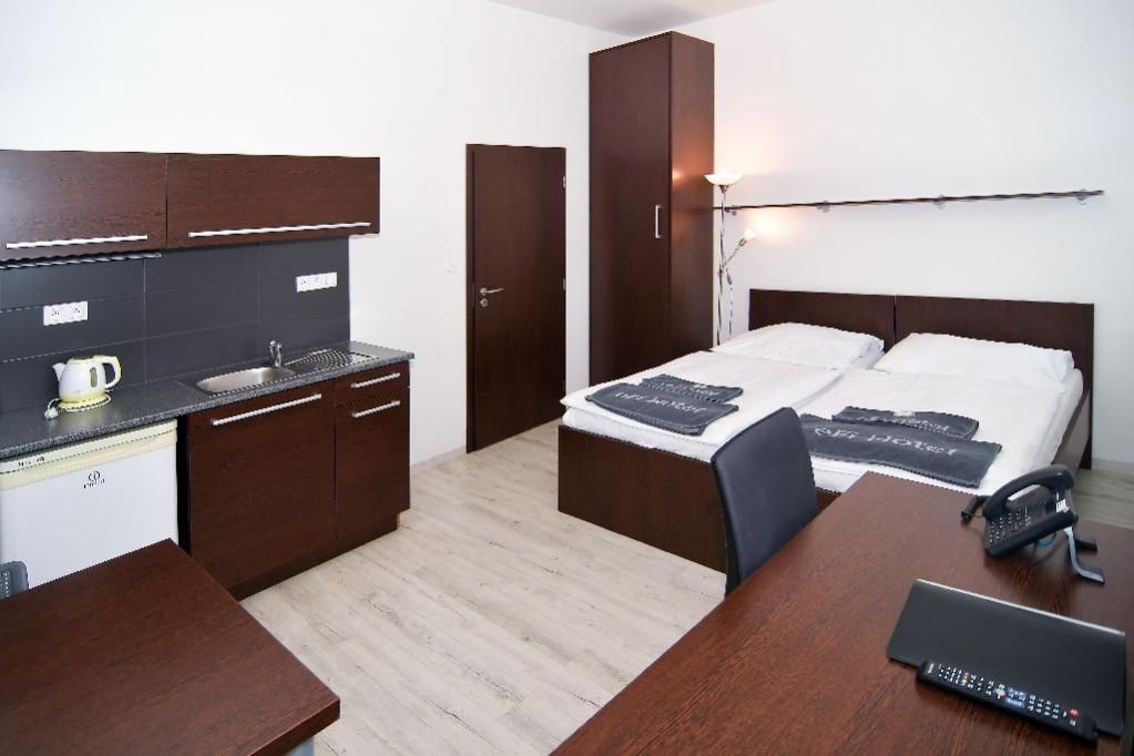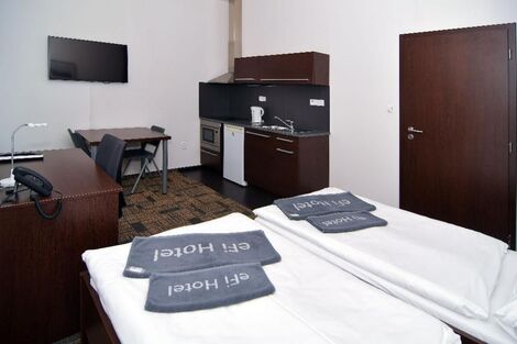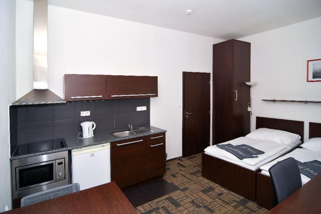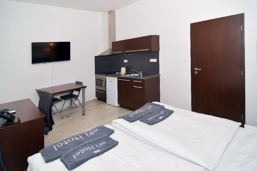 Kompletně zařízený byt. Pronájem na dobu od jednoho měsíce. Možnost pronájmu park. místa za 1000 Kč měsíčně. Možnost pronájmu pračky za 500 Kč měsíčně. Pro studijní pobyty nabízíme pronájem plně zařízeného bytu 1+kk včetně kuchyňské linky a elektrospotřebičů v hotelovém komplexu eFi Palace Hotel v centru Brna. V rámci uzavřeného hotelového komplexu Vám bude k dispozici také fitness, wellness, restaurace, venkovní bazén a parkování na hlídaném parkovišti. Pronájem bytu je možný již od jednoho měsíce až po dobu jednoho roku. Odjíždíte na léto domů? Nevadí, byt uvolníte na letní období, ve kterém nebudete nic platit, a od podzimu se můžete znovu nastěhovat do stejného bytu. Byty 1+kk jsou o výměře od 24 do 25 m2 a nacházejí se ve 2. až 5. podlaží. Budova je opatřena výtahem i schodištěm. Byt má vstupní chodbu vybavenou vysokou šatní skříní s celoplošným zrcadlem a pokojovým trezorem. Dále byt disponuje obývací částí s komfortními postelemi 90 x 200 cm, moderní vybavenou kuchyňskou linkou s pracovní deskou, podstavnou lednicí indesit, vestavěnou mikrovlnou trouba s grilem a horkovzdušnou troubou, varnou konvicí a jídelní soupravou s nádobím pro 2 osoby. Pokoj je vybavený jídelním stolem se 2 židlemi, pracovním stolem s kancelářskou židlí a smart TV. Koupelna je s vanou, nebo se sprch. koutem, umyvadlem, WC a topným žebříkem. WiFi připojení se standardní rychlostí dat je již v ceně pronájmu. Cena měsíčního nájmu zahrnuje úklid společných prostor komplexu eFi Palace a pronájem povlečení s jejich výměnou v rozsahu jedenkrát měsíčně. Výměna ručníků každých čtrnáct dní. Dá se přikoupit častější výměna ložního prádla či ručníků dle ceníku. Možnost pronájmu parkovacího stání v areálu komplexu je za 1000 Kč měsíčně. Možnost pronájmu pračky na pokoji pak za 500 Kč měsíčně. Je požadovaná vratná kauce ve výši jednoho až dvou nájmů dle délky ubytování. Dlouhodobě ubytovaní nájemci mají v komplexu eFi Palace Hotelu zvýhodněný vstup do hotelového wellness&fitness centra, slevu 5 % v hotelové restauraci Stará Tkalcovna včetně možnosti nákupu zvýhodněných snídaní. Nabídka je vhodná pro studenty vysokých škol. Nájem je možný pouze po doložení potvrzení o studiu na vysoké škole v Brně. Skvělá dostupnost do centra Brna za necelých 10 minut pěší chůze nebo dvě zastávky MHD. Více informací na: www.efipalace.cz. Prohlídky bytů možné kdykoli po předchozí domluvě. Neplatíte provizi za zprostředkování pronájmu! <a href="https://www.eurobydleni.cz/byty/1_kk/praha-5/obec-kosire/prodej/"><strong>Prodej bytu 1+kk Praha 5, Košíře</strong></a>