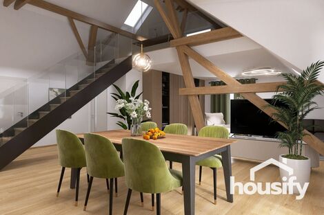 AKCE: první dva kupující získají 150.000 Kč na kuchyňskou linku od Kuchyně Karásek! Toužíte po výjimečném bydlení? Seznamte se s byty unikátního projektu Lofty Lipová v Hodonicích u Znojma. Jeden ze sedmi loftových bytů, kde se historie snoubí s moderními industriálními prvky, může být vaším domovem nebo stabilní investicí. Každý z loftů je navržen tak, aby splňoval nejnáročnější požadavky našich klientů. Čekají vás vysoké stropy, velká okna, otevřené dispozice a kvalitní materiály. Čím je tento byt unikátní? - 5+kk s plochou 161,8 m - Terasa 49,9 m - Sklepní kóje 3,8 m - Vlastní parkovací stání - Vysoký standard vybavení - Prosvětlený loft s přiznanými trámy - Klidná lokalita s výbornou dostupností do Znojma, Brna i Vídně Hlavní obytná část o rozloze 77 m spojuje otevřený mezonet, obývací pokoj a kuchyňský kout. Výjimečnou atmosféru tohoto prostoru vytváří kombinace minimalistických detailů, industriálního kovového schodiště a hřejivosti přírodních materiálů, jako jsou dřevěné trámy. Pečlivé propojení těchto prvků dodává interiéru nezaměnitelný charakter. Další komfort zajistí tři samostatné ložnice a dvě koupelny s toaletou. Byty kladou důraz na kvalitu a funkčnost. Každý je vybaven klimatizací, podlahovým topením a stíněním střešních oken. Tepelné čerpadlo se stará o ohřev TUV a vytápění. Lofty Lipová reagují na nejnovější trendy v oblasti bydlení v podobě kvalitních materiálů a technologií. Do bytu můžete promítnout vaši osobnost a styl výběrem z řady kvalitních podlahových krytin, dveří, koupelnového vybavení a obkladů prémiových značek. Z bytu můžete vytvořit také luxusní sídlo volbou příplatkových dřevěných podlah, vysokých dřevěných dveří a zárubní, vzdušného skleněného zábradlí schodiště, prosklené stěny v otevřeném patře nebo chytrou domácností Loxone. Ke každému bytu náleží parkovací stání, vlastní terasa a sklepní kóje. Můžete si přikoupit i vlastní uzavřenou garáž nebo další parkovací stání. Lofty Lipová najdete v klidné části obce Hodonice s veškerou občanskou vybaveností. Díky dobrému dopravnímu spojení se snadno dostanete do Znojma, Brna nebo Vídně. Máte-li zájem o více informací nebo prohlídku tohoto jedinečného projektu, neváhejte nás kontaktovat. Rádi vám poskytneme veškeré podrobnosti. Zajistíme také financování nemovitosti. Zaručujeme profesionální přístup a ochotu vyjít vstříc vašim požadavkům.