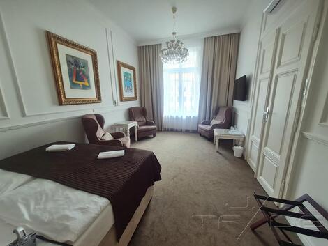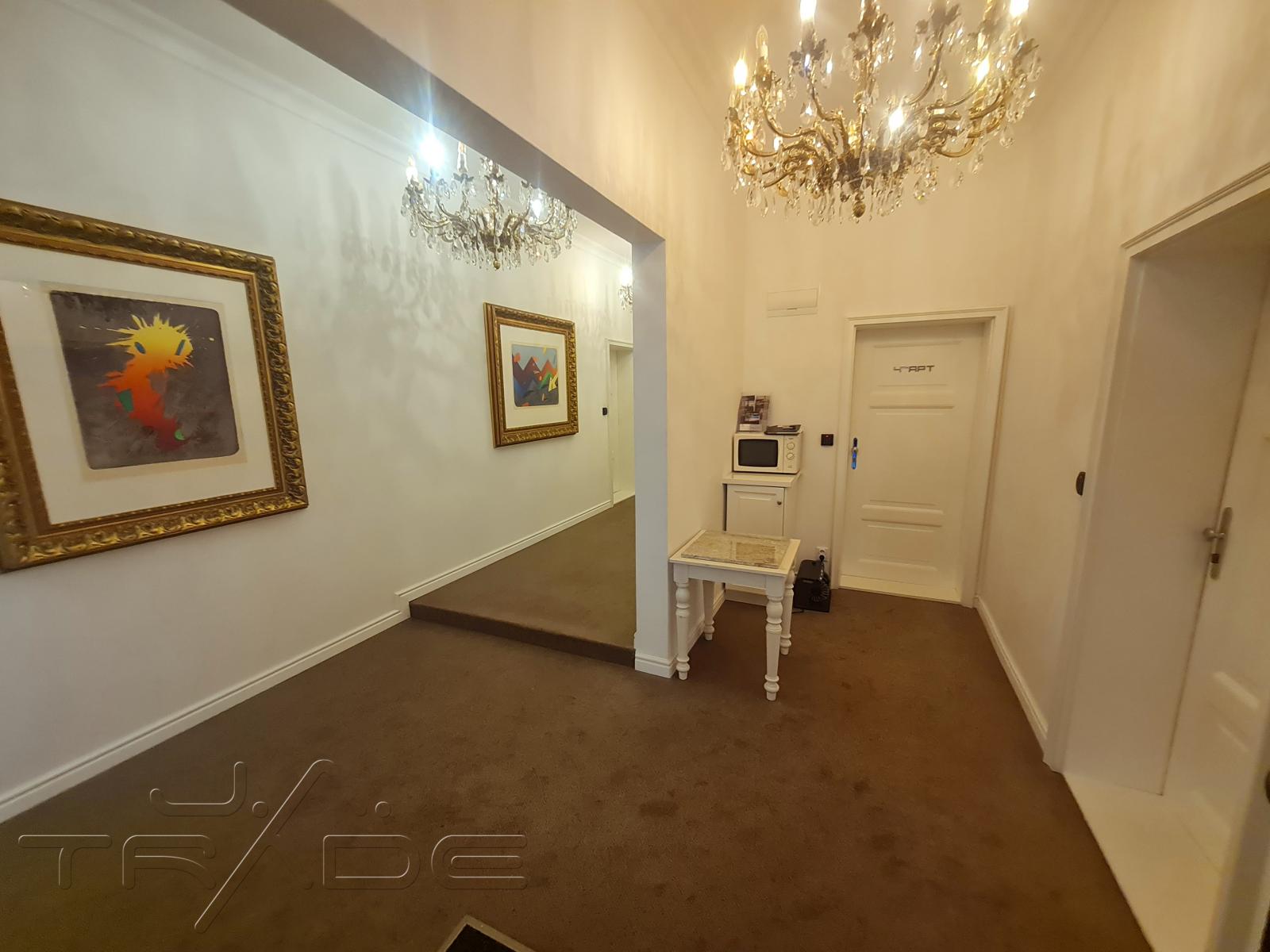 V exkluzivním zastoupení majitele si Vám dovolujeme nabídnout k prodeji slunný šestipokojový byt v OV. Bytová jednotka se nachází v samém památkově chráněném historickém centru města na Náměstí Svobody v domě U čtyř mamlasů. Dům byl postavený na počátku 20. století podle návrhu Germana Wanderleye. Svůj název dostal dům podle čtyř monumentálních mužských soch, které na svých ramenech drží zdobné pilíře. Zkomolenina slova atlas přinesla domu název U čtyř mamlasů. Jméno domu je zkomoleninou čtyř atlasů nesoucích na zádech tíhu sloupových hlavic. Sochy jsou dílem sochaře Johanna Eduarda Tomoly. Ostatní bohatou výzdobu provedl Alfred Dressler. Vnitřní uspořádání paláce navrhl A. Prastorfer. Celková podlahová plocha bytu je 194,80 m2. V současné době je bytová jednotka rozdělena na pět samostatných apartmánů s vlastními koupelnami a slouží ke komerčním účelům jakožto krátkodobý pronájem apartmánů. Původně se jednalo o dvě samostatné bytové jednotky. Celková rekonstrukce této jednotky včetně rozvodů vody, topení, klimatizace ve všech místnostech, elektřiny proběhla v roce 2019 za dohledu památkářů a je zde možnost po menších úpravách zde znovu zřídit bytovou jednotku určenou ke klasickému rodinnému bydlení. Byt je situován ve 4. poschodí a je orientován jak na východní stranu do klidného vnitrobloku, tak i na západní stranu do náměstí. Veškerá občanská vybavenost v bezprostředním okolí. Díky svému exkluzivnímu umístění je byt vhodný jak bydlení, tak i k investici. K této bytové jednotce náleží i dvě sklepní koje v suterénu domu. Náklady na bydlení činí 6.166,- Kč/měs + záloha na elektřinu 3300,- Kč/měs a plyn 8250 ,- Kč/měs. V případě zájmu o prohlídku bytu nebo další informace k bytu volejte +420 774 141414 <a href="https://www.eurobydleni.cz/domy/rodinny-dum/kromeriz/obec-holesov/pronajem/"><strong>Pronájem rodinného domu Holešov</strong></a>