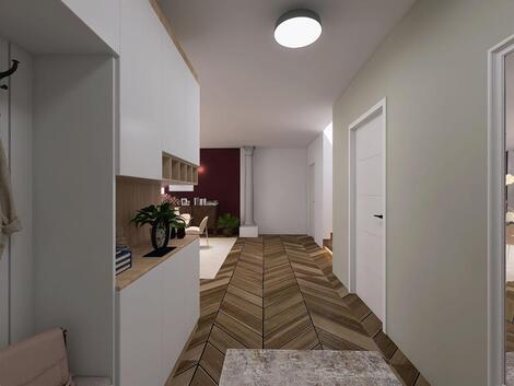 Hledáte opravdu velký byt s nádechem života na zámku? Tak právě pro vás mám k prodeji zděný, až neuvěřitelně vzdušný, mezonetový, zařízený byt, v OV s dispozicí 7+2 v lokalitě: Brno-venkov, Měnín, 20. min jižně od Brna IDS. Cp je cca 246m2, rozprostírá se ve 3. podlažích s terasou a přiměřenými sklepními prostorami 28m2 a 12m2 + zahrada ve vnitrobloku. A co takhle jestli je možné vestavět vnitřní osobní výtah? Ano samozřejmě. Cenově se s bytem 20 min od Brna dostáváme na krásných cca 28.000 Kč/m2. Což ve srovnání s nedalekým Brnem u nové výstavby je i 120-140.000Kč/m2. Co k tomu dodat. Dispozice: (v m2): I.NP- 52,2; a sestává ze Zádveří-3,4; Pokoj + kuchyň- 40,5m2; Koupelna č.1 a WC-6,9; Komora-1,5; + b. 1+1 -40; s vlastní kuchyní WC koupelnou s vanou, vchodem z ulice a sklepem. V současnosti stavebně propojen na úrovni přízemí s bytem 5+1 (není na půdorysu ještě zakreslena, propojení dveřmi přes červenou stěnu) II.NP- 31,4; a sestává z: Pokoj č.2- 21,5; Pokoj č.3 -9,9; + Terasa-12,9; III.NP- 71,6; a sestává z: Hala-16,4; šatna-4,8; Koupelna č.II-12,2; Samost. 2.WC-1,1; Pokoj č.4-15,6; Pokoj č.5-21,5; celkem tedy 213,6m2. + sklep + terasa, -INP sklep 28; K bytu náleží velké sklepy 28 a12; k bytu náleží také podíl na zahradě a vlastní parkovací místo na jinak prostorném parkovišti před domem, zastávka IDS v blízkosti. A teď si představte, že do centra Brna je to IDS cca 20. min. Dům je napojen na všechny IS a byt je orientován do klidu s pěkným výhledem. K dispozici ihned. Při rychlém jednání výrazná sleva.