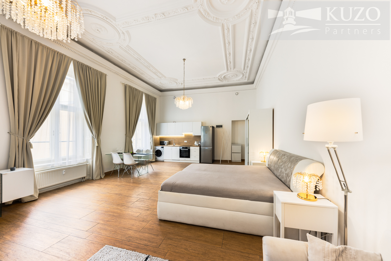 Nabízíme k prodeji luxusní, plně vybavený byt 1+kk o velikosti 72,8 m2, který prošel kompletní rekonstrukcí. Byt se nachází v 1. patře historického domu s výtahem v těsné blízkosti centra Brna, na adrese Cejl 65. Spojuje elegantní design, prostornost a vysoký investiční potenciál. Dispozice a vybavení: celková plocha: 72,8 m2 prostorný obývací pokoj s kuchyňským koutem designová prosvětlená koupelna se dvěma okny (18,2 m2) s rohovou vanou, sprchovým koutem, dvěma umyvadly, WC a bidetem, vysoké stropy s původními štuky, dřevěná okna kompletní vybavení: kuchyňská linka s vestavěnými spotřebiči, kvalitní nábytek, křišťálové lustry - byt je připraven k okamžitému užívání Investiční příležitost Byt je ideální, jak pro dlouhodobé bydlení, tak pro krátkodobé pronájmy (Airbnb, Booking aj.). Momentálně stále obsazeno. Lze využít také jako fotoateliér. Měsíční výnos: 35.000,-60.000,-Kč Měsíční náklady: FO - 1.092,-Kč, správa domu - 160,-Kč, el.energie spol.prostor- 219,-Kč, teplo - 1.960,-Kč, TV ohřev 1.478,-Kč, TV voda - 230,-Kč, vodné-stočné - 250,-Kč, výtah - 42,-Kč, úklid spol.prostor - 447,-Kč, náklady celkem: cca 6 000 Kč + elektřina dle vlastní spotřeby Možnost parkovacího místa ve vnitrobloku (na základě pronájmu) Bezpečný vjezd do domu přes bránu na dálkové ovládání. Lokalita ulice Cejl leží v bezprostřední blízkosti centra Brna, s vynikající dopravní dostupností. Dům je součástí klasické činžovní zástavby z přelomu 19.-20. století a zachovává si původní historický ráz V okolí najdete restaurace, kavárny, obchody i kulturní centra. V docházkové vzdálenosti se nachází zastávky MHD, park Koliště i hlavní nádraží. Výhody nemovitosti: kompletně zařízený byt po rekonstrukci reprezentativní historický dům s výtahem vysoké stropy, vzdušný prostor výborná investiční návratnost