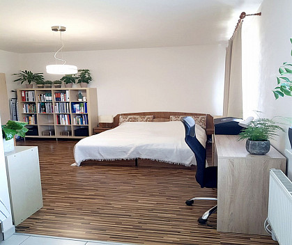 Pronájem bytu 1+1 v podkroví rodinného domu na ulici Dunajevského v Brně Žabovřeskách