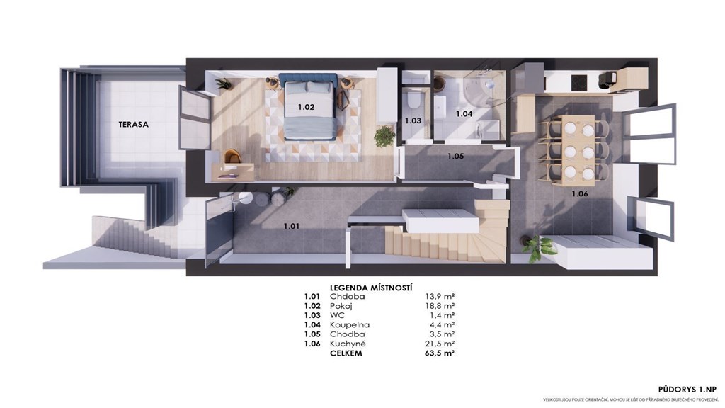 Hledáte klidné rodinné bydlení v blízkosti přírody? Exkluzivně nabízíme krásný mezonet 4+kk v nově zrekonstruovaném řadovém domě na ulici Jírovcova v Brně Kohoutovicích, ideální i jako investiční příležitost. Byt se nachází v 2/3. NP řadového domu se 4 podlažími a celkovou podlahovou plochou 143 m2. Součástí bytu je dvougaráž a zahrádka. V 1. NP je k prodeji druhá bytová jednotka, byt 2+kk. Dispozice bytu: 1. PP dvougaráž - 33 m2 sklep - 10 m2 2. NP kuchyně s jídelním koutem - 22 m2 obývací pokoj 33 m2 koupelna se sprchovým koutem samostatné WC zahrádka - 35 m2 3. NP ložnice - 26 m2 dětský pokoj - 22 m2 koupelna s vanou samostatné WC Rozmístění jednotlivých podlaží a dispozic je možné si prohlédnout v 3D půdorysech. Místo fotografií jsou použity realistické vizualizace, které poskytují představu o tom, jak by mohly interiéry vypadat. Tyto vizualizace byly vyhotoveny na základě skutečných rozměrů z pasportizace. Rekonstrukce Dům prošel kompletní rekonstrukcí zahrnující: Exteriér: zateplení, nové omítky, okna s termoizolačním trojsklem, hliníkové rámy a žaluzie, nové garážové a vchodové dveře, příprava na fotovoltaické panely a klimatizaci. Interiér: výměna elektroinstalace, vody a odpadů, nové topení vytápění a ohřev TUV zajišťuje vlastní plynový kotel, koupelna - obklady a sanita, vinylové podlahy v kombinaci s velkoformátovou dlažbou a bezfalcové interiérové dveře. Dům má vyhotoveno Prohlášení vlastníků - celkem 2 bytové jednotky. Energetická třída domu je C. Zpracována nová pasportizace domu. Mezonet bude předáván bez kuchyňské linky a interiérového osvětlení (není zahrnuto v ceně). Návrhy kuchyňských linek jsou připraveny. Výběr dle preferencí nových majitelů, stejně jako interiérové osvětlení. Cena: 14 450 000, Kč včetně provize RK a právního servisu. Cena dvougaráže: 850 000, Kč. Předpokládaný termín k nastěhování: leden 2025. Lokalita: Ulice Jírovcova je typickou rezidenční oblastí obklopenou rodinnými domy a zelení, situována u lesa s krásným výhledem. Kohoutovice nabízejí ideální prostředí pro rodiny a ty, kteří hledají únik od rušného městského života, s dobrou dostupností veřejnou dopravou. V této lokalitě najdete základní občanskou vybavenost, jako jsou obchody, školky, školy a sportovní zařízení.