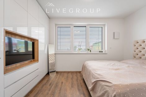 LIVEGROUP CZ představuje byt 3+kk o rozloze 78 m se soukromou zahradou o velikosti 124 m, který spojuje nadčasovou eleganci, prostor a výhled do zeleně. Dispozice zahrnuje dvě ložnice, koupelnu s vanou a toaletou, samostatnou toaletu a velkorysý obývací pokoj s kuchyní a jídelnou o ploše 28 m. Obývací část plynule navazuje na krytou terasu s pergolou se screenovými roletami o velikosti 13 m a rozsáhlou zahradu, která nabízí ideální prostor pro hry, relaxaci nebo pro domácí mazlíčky. Developer u tohoto komorního rezidenčního bydlení kladl důraz na kvalitu použitých materiálů, které vynikají estetikou, odolností a komfortem. Majitel nabízí vilabyt k prodeji v nadstandardním provedení s veškerým vybavením na míru včetně kuchyňské linky se spotřebiči. K dalšímu vybavení patří rekuperace, vlastním kondenzačním kotel, trojskla s elektrickými venkovními žaluziemi, teplovodní podlahové vytápění a kvalitní vinylové podlahy. Celý projekt spadá do energetické třídy C, což zajišťuje úsporný provoz a vysoký standard bydlení. Součástí rezidenčního areálu je zázemí pro pohodlný život: v blízkém okolí je dětské hřiště, obchod i restaurace, poliklinika a pošta. Základní i mateřská škola je dostupná během několika minut chůze po bezpečné cestě. Vlastní parkovací místo je zajištěno přímo u vstupu do bytu. Velký sklepní prostor o velikosti 5,40 se nachází v 1.PP bytového domu. Byt se nachází na okraji města Zbýšov ve čtvrti Padělky, obklopené zelení a klidem, přesto jen několik minut od centra města. Okolí nabízí ideální prostředí pro procházky. Cesta autem na okraj Brna trvá přibližně 20 minut, autobusová zastávka je vzdálena jen 2 minuty chůze. Tento byt představuje jedinečnou příležitost k bydlení v prostředí, kde se harmonicky propojuje moderní komfort, nadstandardní kvalita a přírodní klid, a to vše nedaleko centra Brna. Více informací Vám poskytne pan Michal Klement - LIVEGROUP CZ s.r.o. <a href="https://www.eurobydleni.cz/byty/4_kk/olomouc/obec-unicov/prodej/"><strong>Prodej bytu 4+kk Uničov</strong></a>