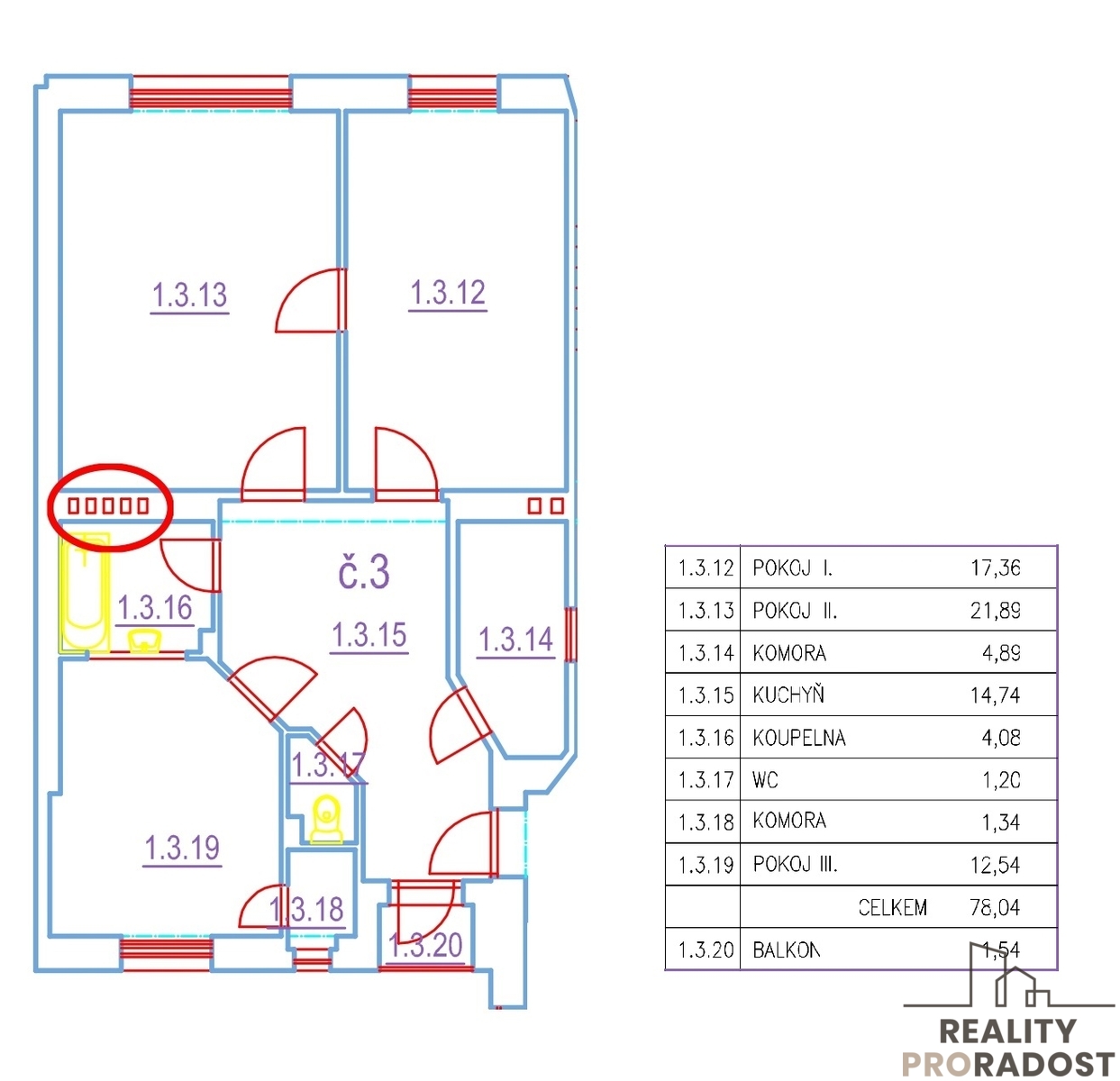 Nabízíme k prodeji byt 3,5+1 v 1. NP cihlového domu s výtahem o celkové výměře 85 m2 v osobním vlastnictví. Byt byl upraven pro maximální využití prostoru k pronájmu po pokojích. Okna bytu jsou orientovaná na západ a východ. Dům, ulice i celý blok domů je bezproblémový. Dispozice bytu: pokoj I. 17,36 m2, pokoj II. 21,89 m2, pokoj III. 12,54 m2, kuchyň 14,74 m2, komora 4,89 m2, koupelna 4,08 m2, WC 1,20 m2, komora 1,34 m2, sklep 5 m2 a balkon 1,54 m2. Pod novým linoleem se nacházejí původní zachovalé parkety a dlažba, v koupelně je dlažba. Vytápění je řešeno ústředním plynovým topením, nový kotel Wolf rok 2020. Dům je po generální rekonstrukci v roce 2011, jsou zde plastová okna a zateplená fasáda, nový výtah, všechny inženýrské sítě po výměně, k bytu náleží sklep o výměře cca 5 m2. Společenství vlastníků pronajímá vysílač mobilnímu operátorovi, roční příjem činí přibližně 70 tis. Kč, které pokryjí většinu provozních nákladů a peněz na údržbu domu, takže měsíční provozní náklady na byt jsou velmi nízké, jedná se tedy o zajímavou investici. Neplánují se žádné opravy ani investice. Lokalita Špitálka patřila ještě před 10 lety k vyloučeným lokalitám, nyní jde o perspektivní investici v blízkosti centra. Naproti bloku domů, kde se byt nachází, dojde k vybudování nábřeží říčky Ponávky s promenádou, vznikne tak unikátní otevřený prostor. Dům má pohodlné parkování, protože naproti domu je nezastavěný prostor, kde dojde k obnažení Ponávky u brněnských tepláren. Dům je v pěší vzdálenosti do nově budovaného areálu premium office centra Vlněna i na hlavní nádraží a Malinovského náměstí. Vzhledem ke své poloze i dispozici je byt vhodný jak pro pohodlné vlastní bydlení, tak i jako výborná investice především na pronájmy. Aktuálně velmi výhodně pronajato, nájemník má zájem pokračovat v nájmu, není to ale podmínkou. Jedna zastávka tramvají od pěší zóny.