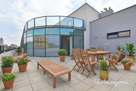 Jednotka je kolaudována jako ateliér. K prodeji nabízíme ateliér o dispozici 3+kk s celkovou plochou 144,8 m2, umístěný v 5. patře cihlového domu s výtahem. Samotná podlahová plocha činí 77,8 m2, k jednotce dále náleží sklep o velikosti 14 m2, terasa o výměře 62 m2 a také parkovací stání v garáži, které je již zahrnuto v ceně. Dominantou interiéru je světlý obývací prostor s kuchyní, vybavenou lednicí, myčkou, indukční varnou deskou, elektrickou troubou a digestoří. Z obývací části je přímý vstup na mimořádně prostornou terasu. Pro lepší představu je na fotografiích terasy vizualizováno možné zahradní posezení a zeleň. Ložnice je vybavena manželskou postelí a šatní skříní. Koupelna nabízí jak sprchový kout, tak i vanu, takže si můžete vybrat podle aktuální nálady. Nechybí umyvadlo s úložnými prostory a samostatná toaleta. V předsíni je praktická vestavěná skříň a komora s pračkou. Dům se nachází v žádané lokalitě Brno-Židenice, která nabízí kompletní občanskou vybavenost v bezprostřední blízkosti - restaurace, potraviny, poštu i tramvajovou zastávku s rychlou dostupností do centra města. Jednotka je v současné době pronajímána prostřednictvím služby Ideální nájemce. Měsíční náklady činí přibližně 5 700 Kč. V případě zájmu mě neváhejte kontaktovat, rád Vás jednotkou provedu.