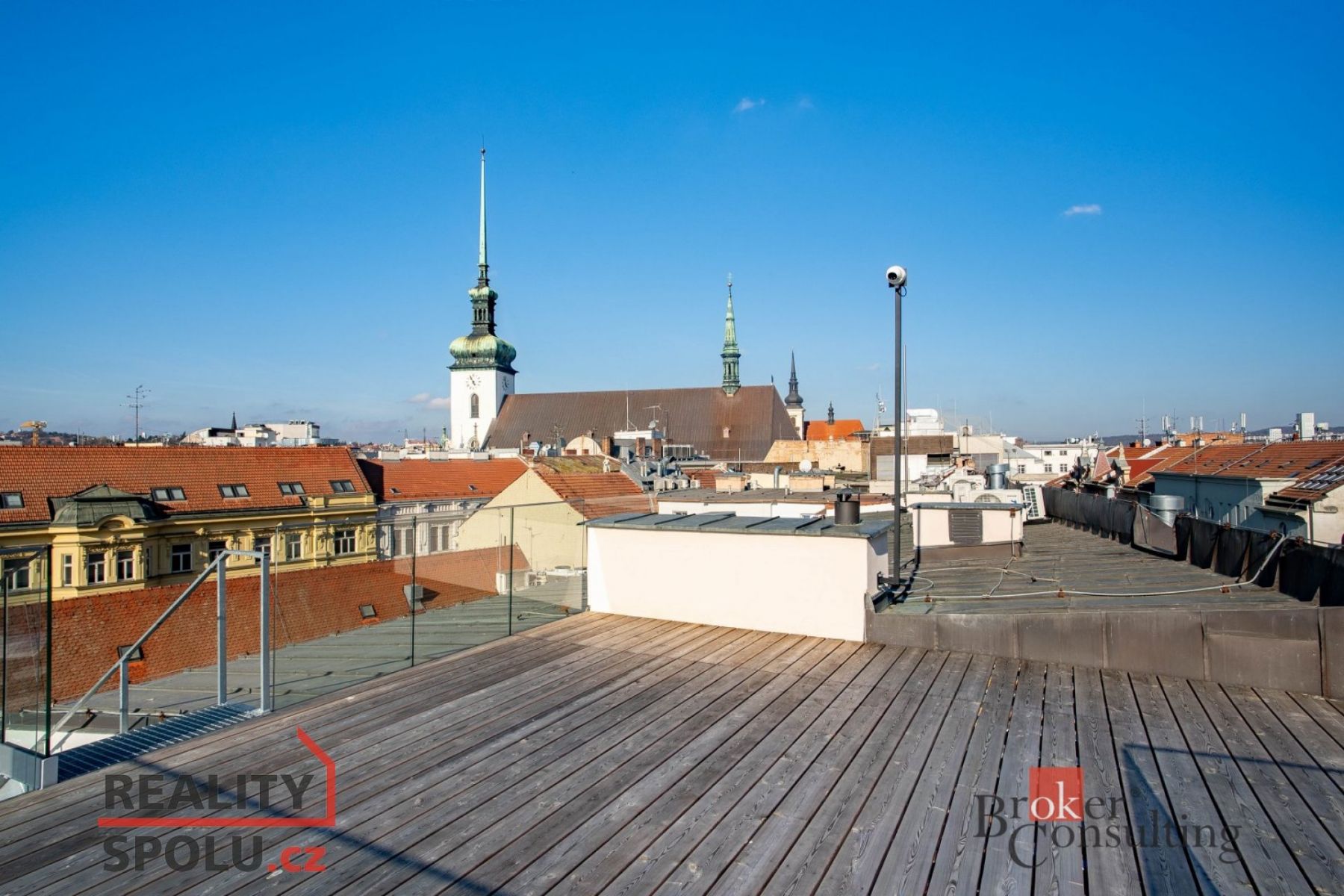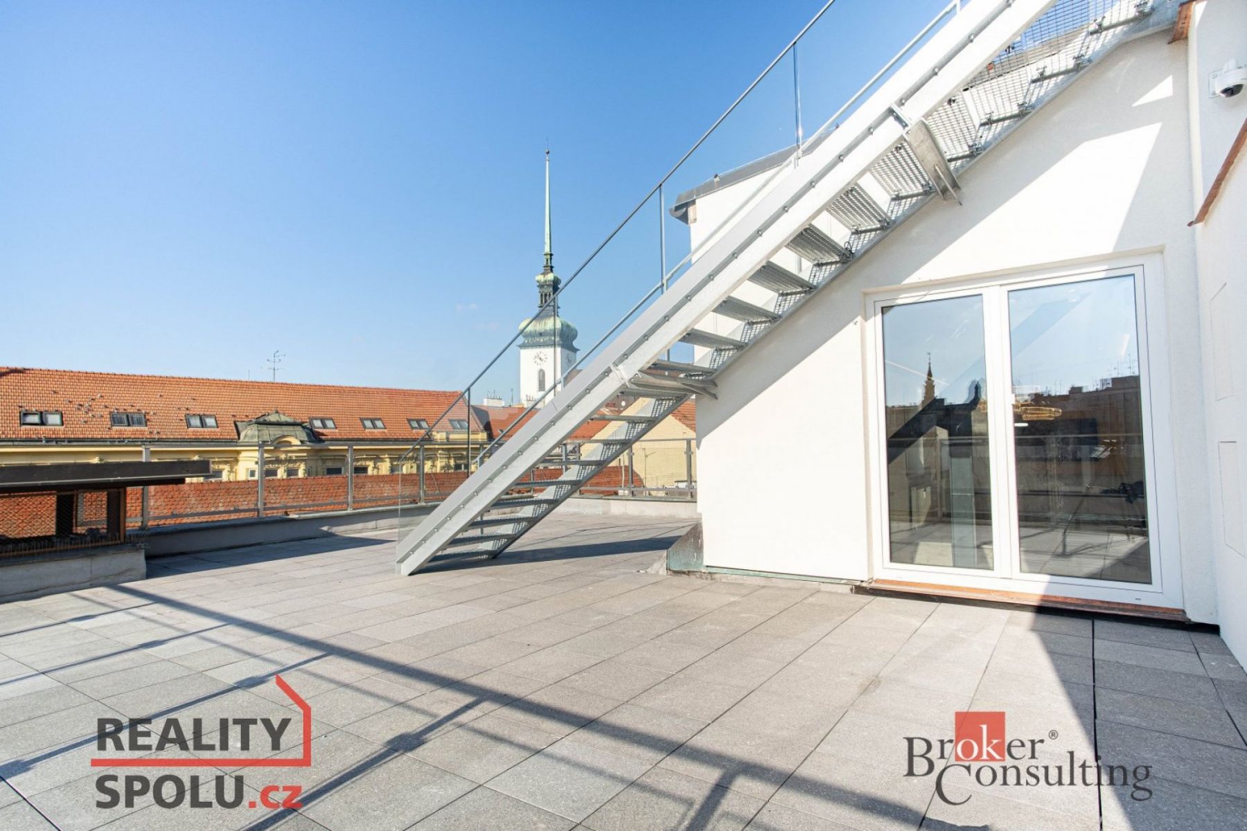 Nabízíme k prodeji exkluzivní, luxusně zrekonstruovaný a kompletně klimatizovaný byt o dispozici 4+kk s celkovou výměrou 200 m, z toho 95,3 m činí podlahová plocha a 104,7 m představují prostorné venkovní terasy. Nemovitost se nachází v samotném srdci Brna na ulici Kobližná a nabízí kombinaci moderního designu, nadstandardních materiálů a mimořádně světlého, vzdušného interiéru. V celém bytě je zároveň připravena instalace venkovních žaluzií. Hlavní částí bytu je velká, prosvětlená obývací místnost propojená s moderní kuchyňskou linkou vybavenou kvalitními spotřebiči. Z obývacího prostoru se vstupuje na soukromou terasu situovanou v horním patře, která poskytuje ideální místo pro relaxaci nebo posezení s přáteli a nabízí krásný výhled na centrum města. V bytě se nacházejí dvě designové koupelny jedna vybavená prostornou vanou a toaletou a druhá se sprchovým koutem a taktéž s toaletou. Elegantní chodba s efektním kulatým zrcadlem dotváří luxusní atmosféru celého interiéru a poskytuje dostatek prostoru a úložných možností. Byt se nachází v jedné z nejžádanějších lokalit v Brně, kde máte doslova vše na dosah ruky obchody, restaurace, kavárny, kulturní vyžití i perfektní dopravní dostupnost. Jedná se o mimořádnou nabídku, která je ideální pro ty, kdo hledají moderní a nadstandardní bydlení v centru města s výjimečným prostorem a soukromou terasou. Prvních šest fotografií představuje vizualizace možného uspořádání a vybavení místností. Pro více informací nebo sjednání prohlídky nás neváhejte kontaktovat. <a href="https://www.eurobydleni.cz/pozemky/stavebni-pozemek-bydleni/pisek/obec-vrcovice/prodej/"><strong>Prodej stavebního pozemku Vrcovice</strong></a>