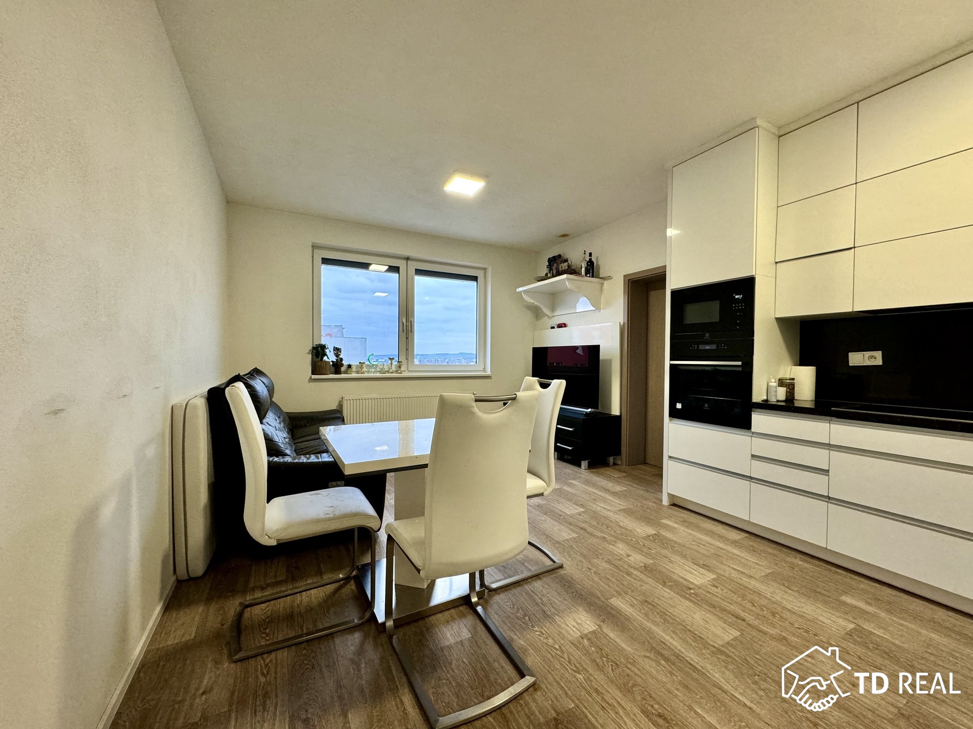 Nabízíme Vám v zastoupení majitele pronájem plně vybaveného 3+kk s parkovacím stáním před domem v Brně - Černovicích, ulice Turgeněvova. Bytová jednotka o CP 75 m2 se nachází v osmém patře osmipatrového cihlového domu s výtahem. Dispozice: vstupní chodba se vstupy do šatny/komory, koupelny, toaleta je zvlášť, vstup do obývacího pokoje s kk 20m2. Obývací pokoj je průchozí do ložnice 17m2, ložnice je dále průchozí do dětského pokoje 13m2. Z Ložnice je vstup na balkon, který je orientovaný na jižní světovou stranu, protihluková plastová trojskla. Byt se pronajímá vybavený: Obývací pokoj s kk - KL s vestavěnými spotřebiči (myčka není k dispozici) včetně lednice, jídelní stůl, židle, gauč, obývací stěna, TV Chodba - skříň, Komora - regál, sušička, Ložnice - skříň, stůl, Dětský pokoj - postel, skříň Uvedené vybavení je podmínkou nájmu. Bytová jednotka nedisponuje sklepní kójí. Nájem činí 23.000,-Kč + energie a služby 7.000,-Kč + elektřina, která je psaná na nájemníka, vratná kauce 2 nájmy, tj. 46.000,-Kč. Byt je vhodný pro rodinu s dětmi, páry, pracující, maximálně však pro 4 osoby. Byt je pro Vás volný od 1.1.2026 K dispozici je parkovací stání za domem v ceně nájmu. Jedná se o velmi klidnou a žádanou lokalitu, veškerá občanská vybavenost se nachází v blízkosti.