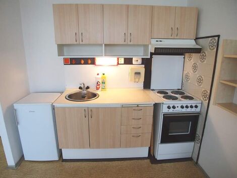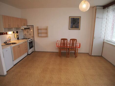 Nabízíme pronájem panelového bytu 1+kk, Brno - Vinohrady, ul. Prušánecká. Byt o celkové ploše 33m2, v 5.patře/11 v domě s výtahem. Dům je po celkové revitalizaci, je zateplený, má nová plastová okna, výtahy, stoupačky... Byt je částečně zařízený (viz foto), v kuchyni starší linkou s lednicí, el. sporák s troubou, stolek, židle, v koupelně pračka, v předsíni vestavěné skříně + samostatná skříň. Jádro je původní umakartové. K bytu náleží sklepní kóje o velikosti cca 2m2. Možnost internetu - v bytě je přípojka od Vodafone. Byt je vhodný pro páry i jednotlivce, nekuřáky bez malých dětí a bez domácích mazlíčků. Zálohy na energie a služby 1.164,-Kč/měs. Elektřina se přepisuje na nájemníka, můžete si tak stonovit zálohovou platbu dle vlastní úvahy. Přepoklad 600 - 800 Kč/měs. Vratná kauce 1 nájem. Volný od ledna. Prohlídka možná po dohodě na tel. 605 931 999 nebo na e-mailu holub@bravoreality.cz