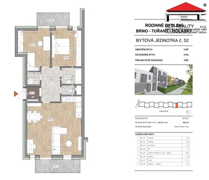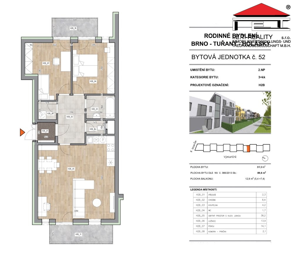 Prodej novostavby vilabytu č. 52, 3+kk, 89,6 m2, se dvěma balkony 7,4 m2 a 5,4 m2, na něž je vstup možný ze všech pokojů. Jednotka je situovananá ve 2.NP čtyřpodlažního domu a její součástí je také sklep 5,6 m2. V krásném prostředí Holáseckých jezer byla zahájena výstavba zcela nové čtvrti pro rodinné bydlení. Roste zde 11 řadových domů, které poskytnou prostorné, klidné bydlení v celkem 78 nadstandardních vilabytech. Každá z připravovaných jednotek nabídne terasu, balkon nebo zahrádku. V kombinaci s okolní přírodou, je zde tvořena iluze života v rodinném domě, ale bez starostí spojených s jeho údržbou. Parkovací místo před domem nebo v podzemní garáži je možné zakoupit samostatně ( garážové stání 550.000,- Kč, dvojgaráž 1.250.000,- Kč ). Volné parkovací plochy jsou pak dostupné na přilehlém pozemku obce. Řadové rodinné viladomy budou mít zelenou střechu a energetický standard ve třídě B, s téměř nulovou spotřebou. V kombinaci s kvalitní tepelnou izolací a moderními technologiemi, se jedná o bydlení nejen velmi úsporné, ale také šetrné k přírodě. Navazující výstavbu mateřské školy pro 48 dětí a domova pro seniory s bezbarierovými byty zaštiťuje Město. Předpokládaný termín dokončení je 03/2027, podrobné informace o průběhu výstavby, individuálních dispozic a financování, Vám rádi představíme při osobním jednání.
