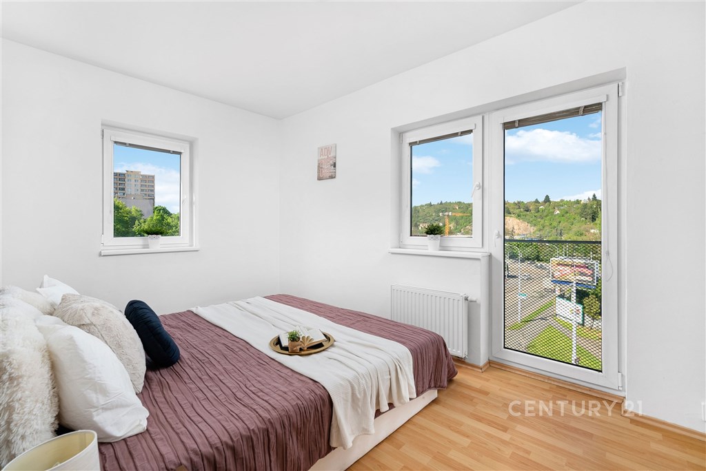 Hledáte příjemné bydlení s výbornou dostupností do centra Brna? K dlouhodobému pronájmu nabízíme světlý a velmi pěkný byt o dispozici 2+kk a podlahové ploše 58 m2, situovaný ve 4. patře moderního bytového domu s výtahem z roku 2007. Byt je ve velmi dobrém stavu, částečně zařízený a připravený k nastěhování. Dominantou bytu je vzdušný obývací pokoj s kuchyňským koutem, vybavený lednicí, sedačkou a jídelním stolem se židlemi. Z obývací části je přímý vstup na terasu o velikosti 5 m2, která je ideálním místem pro ranní kávu, odpočinek i večerní posezení. Díky velkým oknům je byt krásně prosvětlený po celý den. Ložnice je situována do klidné části bytu a je vybavena postelí s nočními stolky a vestavěnou skříní s dostatkem úložného prostoru. Koupelna disponuje vanou a pračkou, toaleta je samostatná. V předsíni se nachází botník a prostor pro další úložný nábytek. K bytu náleží také sklepní kóje o výměře 3 m2. Možnost pronájmu parkovacího stání za 1.500 Kč/měsíc. Celková plocha bytu činí 66 m2 (58 m2 byt + 5 m2 terasa + 3 m2 sklep). Dům se nachází v klidné a velmi vyhledávané lokalitě Brna, jen pár kroků od parku Mojmírovo náměstí, který je ideální pro relaxaci, sport i procházky. V okolí je kompletní občanská vybavenost obchody, školy, školky, kavárny, restaurace i zdravotnická zařízení. Díky výborné dostupnosti MHD je centrum města i další části Brna rychle a pohodlně dostupné. Byt je ideální pro jednotlivce či pár a je vhodný pro dlouhodobé bydlení. Pokud vás nabídka zaujala, ráda vám byt osobně představím na prohlídce.