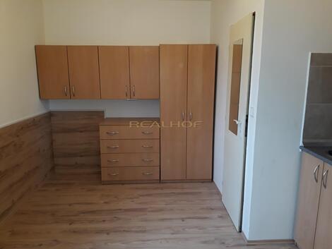 Pronájem bytu 1+kk Brno, Židenice, Chudobova, CP 16 m, přízemí + terasa + zahrada 107 m