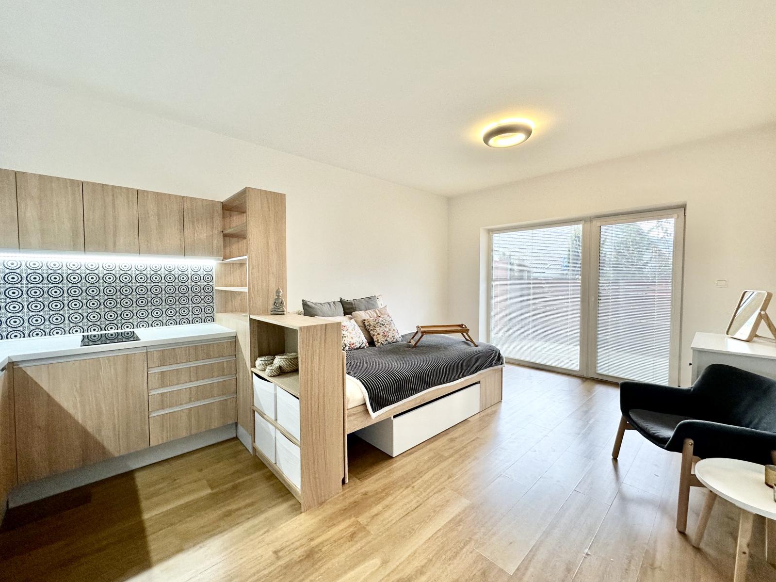 Nabízíme Vám k pronájmu útulný byt 1+kk s předzahrádkou v oblíbené lokalitě Brno-Komín. Byt o podlahové ploše 31 m2 doplněný o příjemnou předzahrádku (12 m2) se nachází v moderní cihlové novostavbě se šesti bytovými jednotkami, zasazené v klidném vnitrobloku plném zeleně. Dispozice bytu - předsíň (5,9 m2) s vestavěnou skříní, koupelna (4,3 m2) s vanou, hlavní pokoj (20,4 m2) s kuchyňskou linkou vybavenou elektrickou varnou deskou a lednicí. Dále se byt nabízí bez vybavení. Podlahové vytápění a ohřev vody zajišťuje vlastní plynový kotel. K dispozici je také sklep. Lokalita nabízí ideální spojení klidu a přírody a výborné dostupnosti do centra. Výhodou je i noční spoj se zastávkou 80 metrů od domu. Majitel preferuje zájemce nekuřáky bez domácích mazlíčků. Nájemné činí 15.000 Kč, paušální platba za služby (voda, elektřina, plyn, služby v domě) 3.500 Kč, vratná kauce 18.500 Kč, provize 18.500 Kč. V případě zájmu je možné si pronajmout parkovací stání přímo u bytu ve vnitrobloku za 2.000 Kč. Byt je k dispozici od 1.2.2026. <a href="https://www.eurobydleni.cz/domy/rodinny-dum/mlada-boleslav/obec-brezno/prodej/"><strong>Prodej rodinného domu Březno</strong></a>