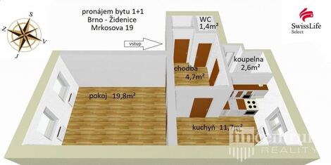 Rádi bychom Vám představili velmi pěkné bydlení nacházející se na ulici Mrkosova v Brně - Židenicích. Moderní byt 1+1 o rozloze 40 m2 se nachází ve 2. NP v cihlovém bytovém domě. Plastová okna s trojskly zaručí příjemnou teplotu i v létě a dobrou izolaci v zimě. Byt se sestává z neprůchozího pokoje 19 m2, kuchyně vybavené novou kvalitní kuchyňskou linkou se skříňkami s tichými dojezdy a vestavěnými spotřebiči (myčka, trouba, varná deska), včetně lednice a nabízí krásný výhled do zeleně zahrad. K lepší představě o dispozicích Vám poslouží plánek umístěný mezi fotografiemi. Nájem 14 000 Kč + 400 Kč za vodu, elektřina se přepisuje na nájemníka. Internet si nájemník zřizuje sám. Majitel požaduje vratnou kauci ve výši 1 měsíčního nájmu. Volné od 1.2.2026. Plnohodnotnou občanskou vybavenost najdete v dosahu 500 m (MŠ, ZŠ, pošta, lékaři, nákupní centra, obchody, restaurace, sportcentrum), včetně MHD vzdálené 5 min chůze (tram 8, 12, bus 64), do centra cca 10 min. Byt je vhodný pro nekuřáky bez zvířat. Pro bližší informace kontaktujte realitní makléřku. <a href="https://www.eurobydleni.cz/byty/3_1/praha-10/obec-horni-mecholupy/prodej/"><strong>Prodej bytu 3+1 Praha 10, Horní Měcholupy</strong></a>