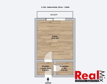 Nabízíme prodej pěkného bytu 1+kk s lodžií po kompletní rekonstrukci, CP 24m2 vč. lodžie, ul. Jedovnická, Brno - Líšeň. Byt se nachází ve 4.NP/5 s výtahem a je orientovaný na výhod do klidného prostředí. Dům je po kompletní rekonstrukci. Pokoj 15m2 se vstupem na lodžii 3m2, koupelna se sprchovým koutem a WC, nová KL v předsíni. Byt je po vkusné rekonstrukci a je nově vymalován. Byt je nezařízen. Veškerá občanská vybavenost v dosahu. Byt je k dispozici ihned. Více info. v RK.