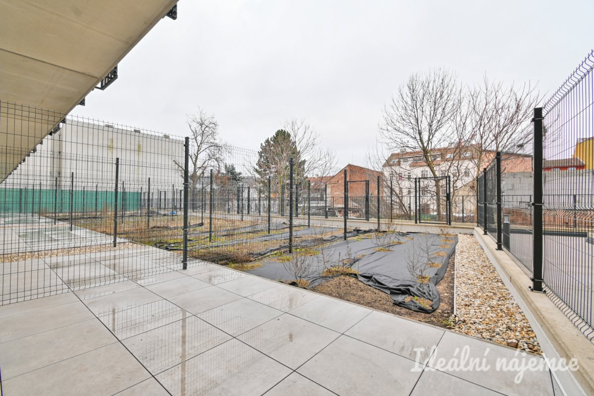 K dlouhodobému podnájmu nabízíme moderní byt o dispozici 1+kk v novostavbě. Byt o celkové výměře 30 m2 se nachází v 1. patře nového bytového domu. Velkou výhodou bytu je terasa a prostorná předzahrádka. Byt disponuje obytnou místností s kuchyňským koutem, koupelnou se sprchovým koutem a toaletou a vstupní chodbou s místem pro úložné prostory. Velkým benefitem budou také venkovní žaluzie, pro zajištění maximálního soukromí. Byt se nabízí vybavený dle fotografií, je zcela nový, dosud neobývaný a připravený k okamžitému nastěhování. Kuchyně je vybavena lednicí, troubou, varnou deskou, pračkou a digestoří. Lokalita Dornych nabízí výbornou dostupnost do centra Brna, kompletní občanskou vybavenost v docházkové vzdálenosti a skvělé napojení na MHD. V okolí se nachází obchody, restaurace, kavárny i služby, zároveň jde o moderní městskou zástavbu. Byt je volný k nastěhování ihned.