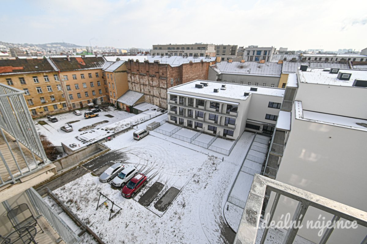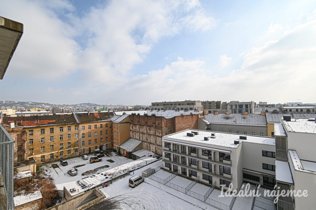 Nabízíme k pronájmu moderní byt o dispozici 2+kk a velikosti 52 m2, který se nachází v 7. podlaží bytového domu na ulici Spolková. K bytu náleží dvě prostorné lodžie a garážové parkovací stání, které je možné pronajmout za 2000 Kč. Byt je nezařízený a tvoří jej vstupní předsíň, komora, koupelna se sprchovým koutem, umyvadlem a topným žebříkem, samostatná toaleta a technická místnost s pračkou. První pokoj disponuje balkonem, zatímco druhý pokoj s kuchyňským koutem má přístup na druhý balkon. Kuchyň je vybavena elektrickou troubou, varnou deskou s digestoří, lednicí s mrazákem a myčkou nádobí. Lokalita nabízí výbornou občanskou vybavenost a skvělou dopravní dostupnost. V okolí se nachází obchody, restaurace, kavárny i zdravotní střediska. Díky blízkosti MHD je centrum Brna dostupné během několika minut. Nedaleko jsou také parky a rekreační zóny, které poskytují ideální místo pro volný čas a sportovní aktivity. Tento byt je ideální volbou pro ty, kteří hledají moderní bydlení s komfortním parkováním v blízkosti centra města.