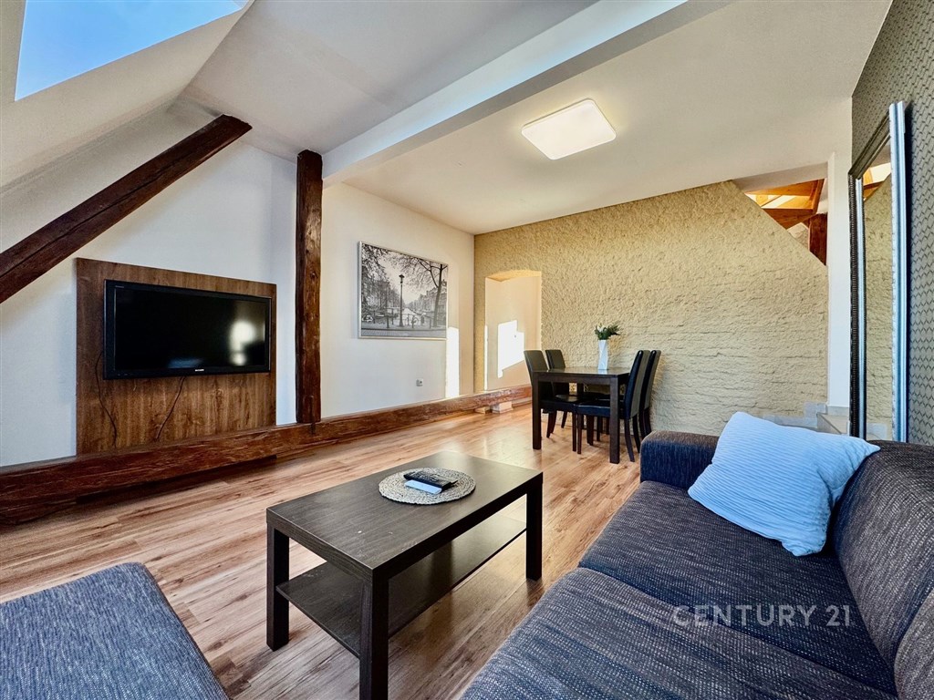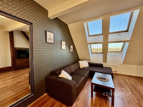 Nabízíme k prodeji moderně zrekonstruovaný byt s klimatizací o dispozici 3+kk na ulici Tržní 6 v Brně Černovicích. Tento byt se nachází v 6. patře cihlového domu bez výtahu původně z roku 1918. Dům prošel kompletní rekonstrukcí v roce 2015. Renovace střechy pak v roce 2023. Dům je zateplený s dřevěnými střešními okny. Svojí neobvyklou dispozicí a rozložením ve dvou patrech nabízí neotřelý prostor v blízkosti řeky Svitavy a dochozího Centra Brna. Interiér bytu má prvky přiznaných krovů a dominuje mu centrální stěna s prostorovou povrchovou úpravou a schodištěm do patra. Byt má přistřešenou terasu s orientací na J. Terasa směřuje do klidného vnitrobloku kam má majitel přístup. Ložnice a obývací pokoj v prvním podlaží bytu jsou orientovány na S s krásným výhledem na Židenice, Vinohrady a Líšeň. Na tomto patře je i kuchyně s terasou a toaleta s umyvadlem. Druhé patro je přístupné po dřevěném otevřeném schodišti z kuchyně. Zde je v zádveří ukrytý plynový kondenzační kotel s úložným prostorem na chodbě. Z chodby je vstup do ložnice a koupelny se sprchovým koutem, pračkou a dostatkem prostoru. Náklady měsíčně za rok 2O24 celkem 5.012 Kč: SVJ 802 Kč Elektřina 1.820 Kč Plyn 2.390 Kč Parkování je možné v modré zóně C na ul. Klíčové nebo Zvěřinové. Přímo před domem se dá bezpečně zastavit a vyložit nákup. Pro více informací a prohlídku kontaktujte makléře Petra Vyskočila.