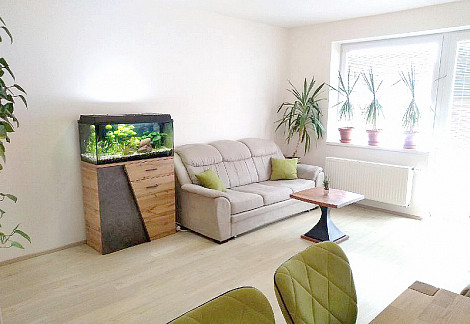 V novém bytovém areálu Zelnice II. Orientace celého bytu na Jih. Velikost bytu: 51.m2, terasa: 8 m2, sklep 3. m2 Z předchodby jsou samostatné vstupy do pokoje, koupelny, ložnice. Samostatný kuchyňský kout - KL, sporák s troubou a digestoří. Z obývací místnosti vstup na terasu. Do sklepa vstup v domě přes dvoje dveře – čili bezpečný pro uskladnění čehokoli. Krátce do přírody, procházky kolem rybníka atd.. V blízkém okolí jsou obchody s potravinami, nákupní centrum. Výborná dostupnost na dálnici i do historického centra se zámeckou zahradou, otevřenou v kteroukoli dobu. Jde o výjimečně klidný dům se slušnými sousedy. Volné dle dohody: únor - březen 2026. Nájem: 17000,- + 3500 služby. El. energie v bytě se přepisuje na nájemce. Byt je vhodný pro 1.2.osoby, nekuřáky, bez zvířat. Slavkov u Brna, 778 010 344 Volejte kdykoli.