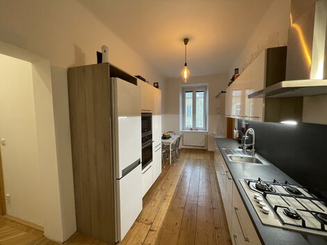 Prodej prostorného bytu 4+1, Brno - Husovická Nabízíme k prodeji nadstandardně prostorný, vybavený byt o dispozici 4+1 v atraktivní městské části Brno - Husovice, na ulici Husovická. Byt má celkovou plochu 106 m2, k bytu náleží velký sklep o výměře 22 m2 a dále podíl na společné zahradě, která poskytuje příjemné zázemí pro relaxaci v městském prostředí. Technický stav a rekonstrukce Byt je po kompletní rekonstrukci, která proběhla v 08/2016. V rámci rekonstrukce byly provedeny nové rozvody elektřiny, plynu a vody, instalováno nové topení včetně plynového kotle, vybudována nová kuchyňská linka, provedeny nové omítky a rekonstrukce podlah. Byt je díky tomu ve velmi dobrém technickém stavu a bez nutnosti dalších investic. Promyšlená dispozice a soukromí Byt je velmi dobře dispozičně řešený - všechny pokoje mají samostatné vstupy z chodby, což zajišťuje dostatek soukromí a široké možnosti využití. Dispozice je ideální pro rodinné bydlení, ale také pro kombinaci bydlení a práce z domova či investiční záměr. Dispozice: • prostorná vstupní chodba 10,3 m2 s místem pro šatní skříně • samostatná kuchyň 14,43 m2 s prostorem pro jídelní kout • obývací pokoj 27 m2 - dominantní místnost bytu, ideální pro rodinný život i návštěvy • ložnice 20,8 m2 - klidná a velmi prostorná • dětský pokoj 15,9 m2 - komfortní velikost pro jedno i dvě děti • pracovna 10,4 m2 - vhodná jako home office, pokoj pro hosty či další dětský pokoj • koupelna 4,7 m2 • samostatné WC 1,4 m2 Byt je světlý, vzdušný a nabízí praktické uspořádání bez průchozích pokojů. Náklady na bydlení • elektřina: 2 150 Kč/měsíc • plyn: 1 675 Kč/měsíc • platby SVJ: cca 30 Kč/m2/měsíc Další výhody • sklep o velikosti 22 m2 - ideální pro kola, sportovní vybavení nebo skladování • podíl na společné zahradě - příjemný bonus pro odpočinek či posezení • klidný bytový dům Lokalita s výbornou dostupností a budoucím potenciálem Husovice jsou oblíbenou lokalitou díky rychlé dostupnosti do centra Brna, výborné dopravní obslužnosti MHD i vlakem a kompletní občanské vybavenosti v okolí. Významným benefitem je také blízkost rozsáhlého developerského projektu Nová Zbrojovka, který je aktuálně ve výstavbě. Tento projekt v budoucnu nabídne moderní lokalitu, kanceláře, obchody, služby i veřejný prostor a výrazně přispěje k dalšímu rozvoji a zatraktivnění celé oblasti. Nemovitost je vhodná jak pro vlastní bydlení, tak jako zajímavá investiční příležitost s dlouhodobým potenciálem růstu hodnoty. V případě zájmu o více informací nebo osobní prohlídku nás neváhejte kontaktovat.