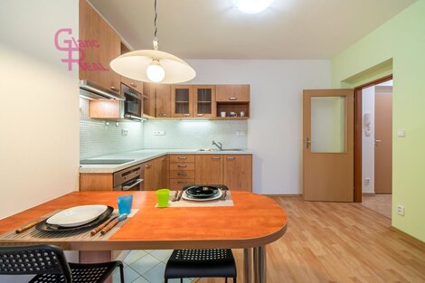 K pronájmu nabízíme světlý a útulný byt 2+kk s balkonem a parkovacím stáním v oblíbené lokalitě Brno - Trnitá na ul. Zderadova. Byt o celkové ploše 51 m2 se nachází ve 3. podlaží moderního cihlového domu s výtahem. Dispozice bytu je řešena jako 2+kk. Vstup do bytu vede přes uzamykatelnou společnou chodbu pro byty umístěné na stejném podlaží. Za vstupními dveřmi bytu se nachází prostorná předsíň. Obývací pokoj je propojen s kuchyňským koutem. Kuchyňská linka je vybavena spotřebiči: lednicí, sklokeramickou varnou deskou, elektrickou troubou a digestoří. Z ložnice je vstup na balkon orientovaný do klidného vnitrobloku. Byt se pronajímá včetně vybavení: • obývací pokoj: sedačka, komoda, jídelní stůl se dvěma židlemi, • ložnice: dvojlůžko, komoda • koupelna: vana, umyvadlo, zrcadlo, pračka • WC: závěsné V bytě jsou plovoucí podlahy, v kuchyňském koutě, předsíni, koupelně a WC je dlažba. Plastová okna jsou vybavena žaluziemi. K bytu náleží sklepní kóje a jedno kryté parkovací místo v 1. PP domu. Lokalita je jedním z hlavních benefitů - centrum města je dostupné MHD do 5 minut nebo pěšky za 10 minut. V okolí najdete obchody, restaurace, lékárnu, dětské hřiště i cyklostezku. Vše potřebné máte doslova na dosah. K nastěhování ihned. Cena nájmu: 18.000 Kč/měs. + služby 3.500 Kč/měs. Vratná kauce ve výši jednoho měsíčního nájmu vč. inkasa + provize RK ve výši měsíční platby.