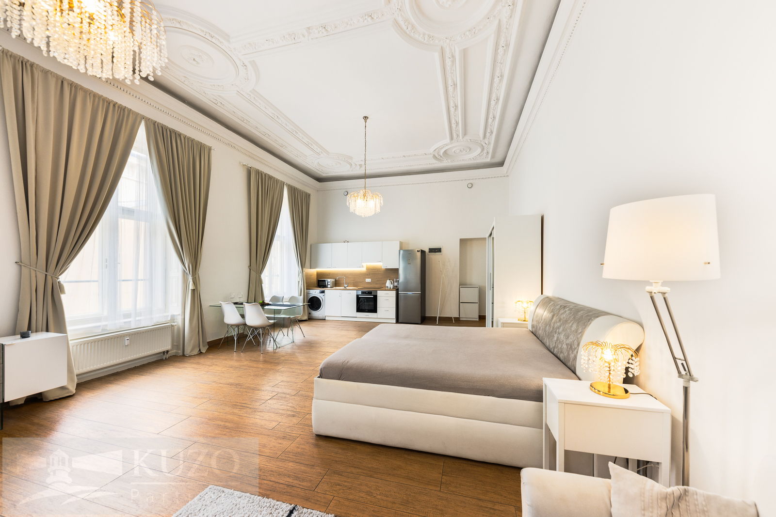 Nabízíme k prodeji luxusní, plně vybavený byt 1+kk o velikosti 72,8 m2, který prošel kompletní rekonstrukcí. Byt se nachází v 1. patře historického domu s výtahem v těsné blízkosti centra Brna, na adrese Cejl 65. Spojuje elegantní design, prostornost a vysoký investiční potenciál. Dispozice a vybavení: celková plocha: 72,8 m2 prostorný obývací pokoj s kuchyňským koutem designová prosvětlená koupelna se dvěma okny (18,2 m2) s rohovou vanou, sprchovým koutem, dvěma umyvadly, WC a bidetem, vysoké stropy s původními štuky, dřevěná okna kompletní vybavení: kuchyňská linka s vestavěnými spotřebiči, kvalitní nábytek, křišťálové lustry - byt je připraven k okamžitému užívání Investiční příležitost Byt je ideální, jak pro dlouhodobé bydlení, tak pro krátkodobé pronájmy (Airbnb, Booking aj.). Momentálně stále obsazeno. Lze využít také jako fotoateliér. Měsíční výnos: 35.000,-60.000,-Kč Měsíční náklady: FO - 1.092,-Kč, správa domu - 160,-Kč, el.energie spol.prostor- 219,-Kč, teplo - 1.960,-Kč, TV ohřev 1.478,-Kč, TV voda - 230,-Kč, vodné-stočné - 250,-Kč, výtah - 42,-Kč, úklid spol.prostor - 447,-Kč, náklady celkem: cca 6 000 Kč + elektřina dle vlastní spotřeby Možnost parkovacího místa ve vnitrobloku (na základě pronájmu) Bezpečný vjezd do domu přes bránu na dálkové ovládání. Lokalita ulice Cejl leží v bezprostřední blízkosti centra Brna, s vynikající dopravní dostupností. Dům je součástí klasické činžovní zástavby z přelomu 19.-20. století a zachovává si původní historický ráz V okolí najdete restaurace, kavárny, obchody i kulturní centra. V docházkové vzdálenosti se nachází zastávky MHD, park Koliště i hlavní nádraží. Výhody nemovitosti: kompletně zařízený byt po rekonstrukci reprezentativní historický dům s výtahem vysoké stropy, vzdušný prostor výborná investiční návratnost