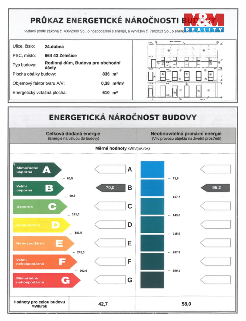 Moderní byt 3+kk o velikosti 77 m2 se nachází v obci Želešice, která leží na přímém předměstí Brna a je ideální volbou pro ty, kdo chtějí bydlet v klidu, ale zůstat v těsném kontaktu s městem. Obec má výbornou dostupnost do Brna - autobusem na smyčku tramvaje č.2, do OC Olympie i na vlakové nádraží Modřice. Autem jste za 8 minut v OC Olympie nebo Futurum, velkou výhodou je také rychlé napojení na dálnice D52, D2 a D1. Byt nabízí vysoký standard bydlení: masivní dřevěné podlahy z přírodního dubu, italskou keramickou dlažbu, kuchyni na míru s vestavěnými spotřebiči a velká okna s hliníkovými rámy a izolačními trojskly. Dům má energetickou třídu B a centrální plynové vytápění. Součástí bytu je navíc kromě šatny přímý vstup na půdní prostor 29 m2, jež nabízí další možnosti využití. K bytu náleží parkovací stání v uzavřeném vnitrobloku s elektrickými vraty, sklep a kolárna. V obci je kompletní občanská vybavenost - mateřská i základní škola, obchody, restaurace i cukrárna s vinotékou.