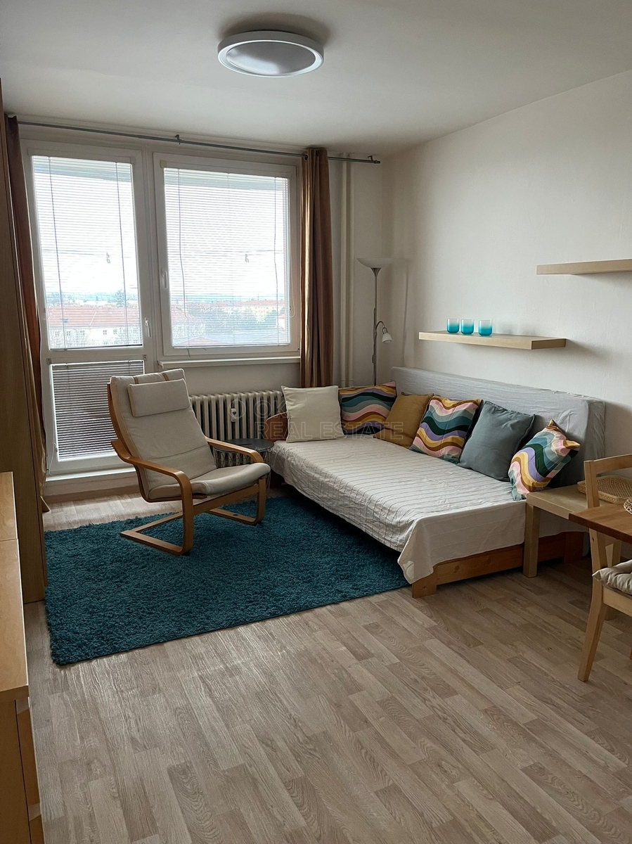K pronájmu plně zařízený byt 1+kk s lodžií v Brně v Žabovřeskách. Byt o ploše 27 m2 prošel v roce 2016 celkovou rekonstrukcí, na podlaze je nová podlaha z lina, nová plastová okna a nové zděné bytové jádro. Součástí pokoje je kuchyně, kde je sklokeramická varná deska s digestoří, mikrovlnka a lednička, menší jídelní stůl, dvě židle, v pokoji je širší postel, křesílko, stolek a šatní skříň. V koupelně je umístěn sprchový kout, umyvadlo, toaleta a pračka. Předsíň je vybavena šatní stěnou a botníkem. Z pokoje je vstup na lodžii. Byt je umístěn ve 7.NP /12NP s orientací na východ. Vchodové dveře do bytu jsou opatřeny protihlukovým krytím. Celý dům je kompletně revitalizovaný a zrekonstruovaný včetně společných prostor a dvou výtahů. V blízkém okolí je veškerá občanská vybavenost, obchody, restaurace, posilovna, lékárna, bankomat nebo lékaři. Byt je vhodný pro jednoho nebo pár. Majitel preferuje nekuřáky, bez zvířat a dlouhodobý pronájem. Možnost k nastěhování od února dle domluvy.