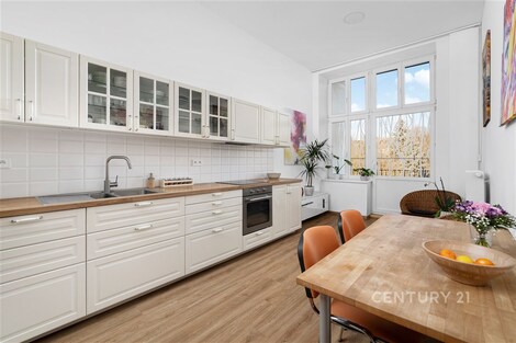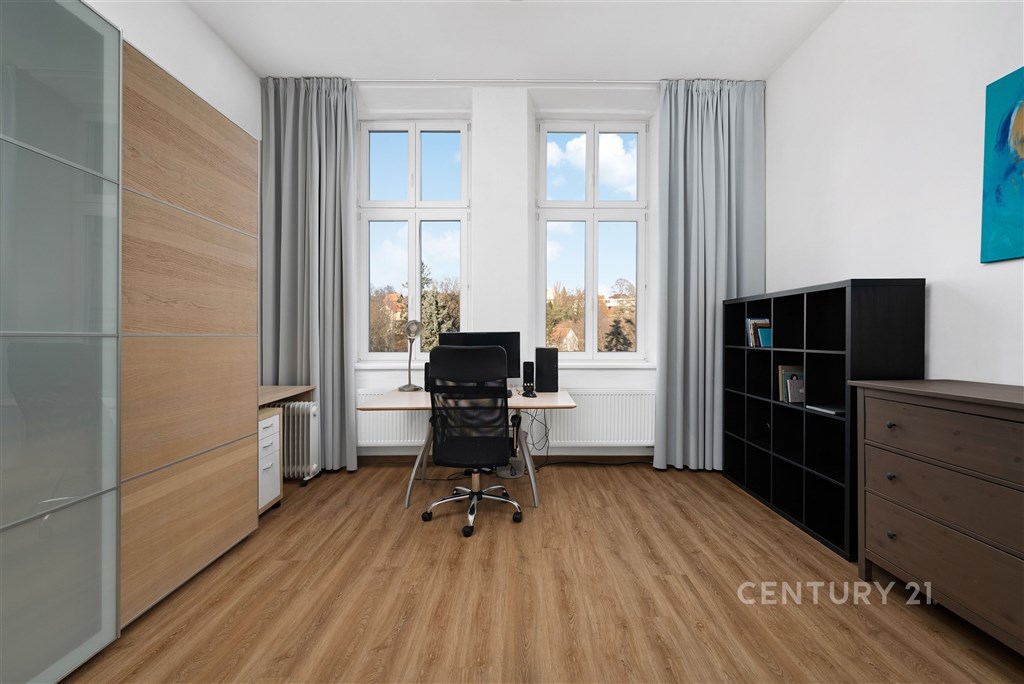 Nabízíme k prodeji prostorný a světlý byt o dispozici 2+1 s podlahovou plochou 102,8 m2, nacházející se v historickém domě na adrese Antonína Slavíka, přímo u parku Lužánky. Součástí bytu jsou také dva balkony o celkové výměře 7,83 m2. K bytu je také možnost využití menší společné zahrady ve vnitrobloku pro klidné letní posezení. Byt se nachází v domě, který prošel kompletní rekonstrukcí, a je vytápěn vlastní plynovou kotelnou, což zajišťuje stabilní dodávky tepla i dlouhodobě příznivé provozní náklady. Dispozice bytu je velmi praktická a nadstandardně velkorysá. Prostorná vstupní chodba přirozeně propojuje všechny místnosti a nabízí dostatek prostoru pro vestavěné skříně i úložné řešení. Samostatná kuchyně je plně vybavená moderní kuchyňskou linkou s vestavěnými spotřebiči a nabízí dostatek místa pro velký jídelní stůl. Z kuchyně je přímý vstup na jeden z balkonů orientovaný do klidného vnitrobloku s přímým výhledem na vilu Tugendhat a zeleň, což je jedním z největších benefitů této nemovitosti. Oba obytné pokoje jsou velmi prostorné, světlé a díky velkým oknům působí mimořádně vzdušně. Bez problémů zde vznikne pohodlný obývací pokoj, ložnice i pracovní kout. Druhý balkon přístupný z pokoje poskytuje další venkovní prostor a rozšiřuje možnosti užívání bytu. Koupelna je vybavena rohovou vanou, topným žebříkem a moderními obklady. Samostatná toaleta zvyšuje komfort každodenního provozu. Velkým praktickým bonusem je také samostatná technická místnost, která slouží pro pračku, sušičku i další úložné potřeby. Interiér prošel kvalitní rekonstrukcí a je ve velmi dobrém technickém stavu. Vysoké stropy, nové podlahy, moderní osvětlení a dřevěné obložkové dveře podtrhují celkově elegantní a nadčasový charakter bytu. Byt se prodává kompletně vybavený, včetně kuchyně, skříní a většiny nábytku z fotografií, s výjimkou malého stolku a křesílek v kuchyni, což umožňuje okamžité nastěhování nebo rychlé zahájení pronájmu bez dalších investic. Celkové náklady za byt činí 8 414 Kč měsíčně. V tom je započítána elektřina 1 390 Kč měsíčně, platba SVJ 6424 Kč měsíčně a internet 600 Kč měsíčně. Samotný dům je architektonicky velmi hodnotný historický rohový objekt s bohatě zdobenou fasádou, který patří k dominantám této části Brna a výrazně zvyšuje prestiž celé adresy. Poloha u parku Lužánky patří dlouhodobě k nejžádanějším v Brně - nabízí kombinaci klidu, zeleně a přitom vynikající dostupnosti do centra města. Zastávky MHD jsou v bezprostřední blízkosti a do centra Brna se dostanete během několika minut. Tento byt představuje výjimečnou nabídku jak pro vlastní komfortní bydlení, tak i jako velmi stabilní a atraktivní investici v jedné z nejlepších lokalit města. Pokud hledáte prostorný byt s výhledy do zeleně, balkony, kvalitním zázemím domu a prestižní adresou, je tato nemovitost ideální volbou.