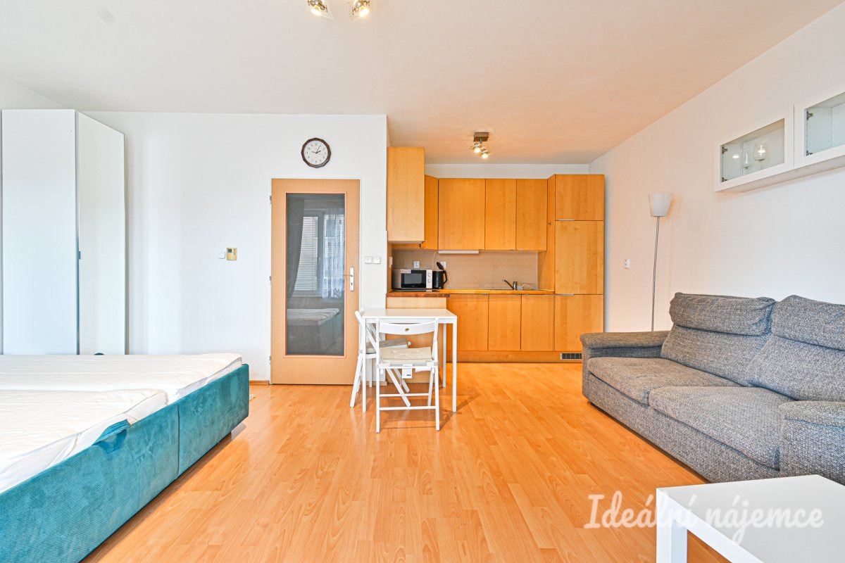 K dlouhodobému podnájmu nabízíme byt o dispozici 1+kk v oblíbené lokalitě, na ulici Bělohorská. Byt o celkové výměře 38 m2 + 66 m2 terasa se zahrádkou se nachází v 1. patře domu s výtahem. Součástí bytu je kuchyňská linka s elektrickou troubou, varnou deskou, myčkou, mikrovlnnou troubou a lednicí. V obytné části nalezneme pohovku, postel, jídelní stůl se židlemi a úložné prostory. V koupelně je vana, pračka, umyvadlo a toaleta. Byt se nabízí vybavený dle fotografií. V okolí domu je veškerá občanská vybavenost - supermarket, restaurace, lékárna, základní i mateřská škola. Zastávka MHD se nachází jen pár minut chůze od domu. Byt je volný k nastěhování od 1.3.2026.