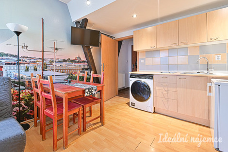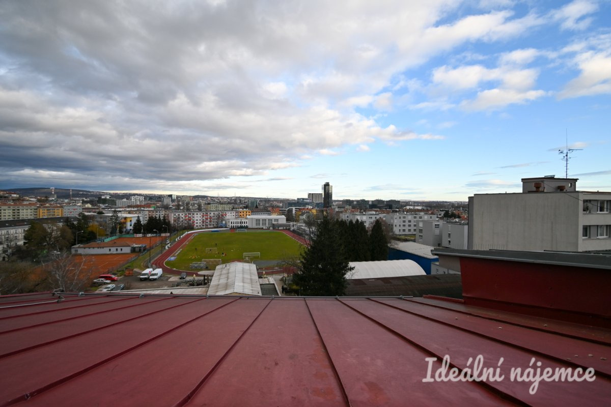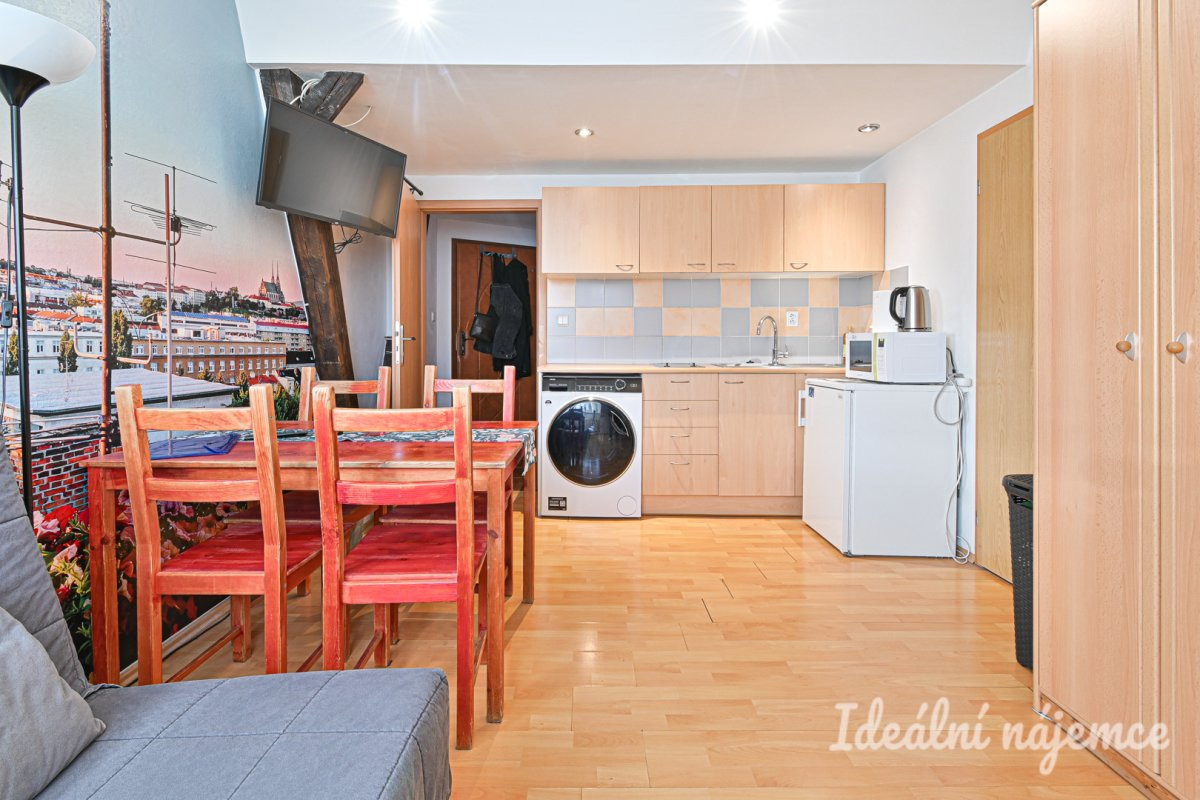 Máme k dispozici slunný byt 2+kk v oblíbené lokalitě vhodný k dlouhodobému pronájmu. Celková plocha bytu činí 44 m2, přičemž 28 m2 připadá na užitný prostor. Tento byt zahrnuje také vrchní pokoj o rozloze přibližně 16 m2, který má charakteristické zkosené stropy. I přesto, že tento pokoj není zahrnut do oficiální užitné plochy bytu kvůli své nižší a zkosené střeše, nabízí dostatečný prostor pro pohodlné užívání. Rozměry jsou orientační. Byt se nachází ve 6. podlaží (nejvyšším podlaží) cihlového domu s výtahem a se sklepem. Byt je kompletně vybaven. Kuchyňská část obsahuje nádobí, lednici, varnou desku a mikrovlnnou troubu. V obývací části naleznete dvě postele, jídelní stůl se židlemi, televizi, klimatizaci, šatní skříň a sedačku. Ložnice disponuje dalšími dvěma postelemi, další klimatizací, pracovním stolem a úložným prostorem. V koupelně se nachází sprchový kout, umyvadlo a toaleta. Některé vybavení lze po dohodě se majitelem odebrat. V okolí domu se nachází restaurace, supermarket, základní a mateřská škola, lékárna a další občanská vybavenost. Byt se nachází v bezprostřední blízkosti zastávky Nemocnice Milosrdných bratří (tram 2,5,6). Na Českou se dostanete za 11 minut a na hlavní nádraží za 10 minut. Byt je volný k nastěhování od 1.4.2026. Byt pronajímá Ideální nájemce - služba, se kterou budete bydlet bezstarostně a za férových podmínek. Když se něco přihodí, k dispozici jsou správci, kteří s vámi vše vyřeší. Pomůžeme s veškerou administrativou, s nastavením plateb a zajistíme vám speciální pojištění. Pojďte bydlet s námi!