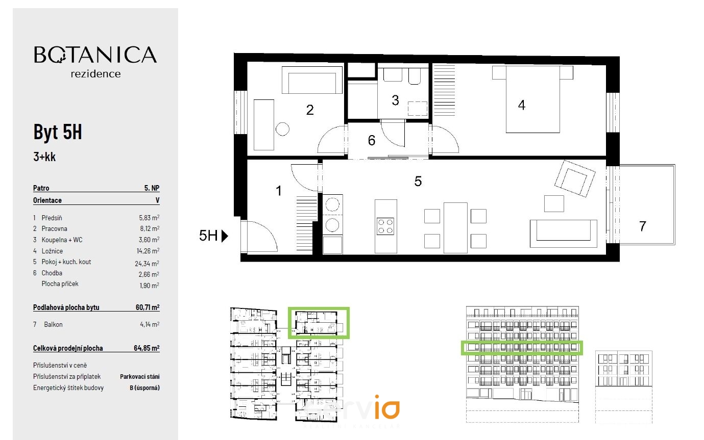 Předprodej bytových jednotek projektu BOTANICA zahájen! Nabízíme Vám jedinečný projekt, který dá vašemu životu nový rozměr a prostor pro životní rovnováhu. Moderní městské bydlení je zeleným bodem v centrum Brna. Fasáda, balkony i společné prostory jsou navržené tak, aby byly osázené rostlinami a vytvořili tak zklidňující prostředí s příznivým mikroklimatem. Výstavba projektu bude zahájena v II.Q/2025. Nabízíme Vám bytové jednotky 3+KK o celkové ploše 64,8 m2. V interiérech pracujeme s prvotřídními přírodními materiály, které jsou zárukou vysoké kvality a nadčasového designu. Prostor zde mají moderní prvky jako je příprava pro chytrou domácnost. Vedle vlastní lodžie si klidné posezení užijete také na společné terase ve vnitrobloku. Nechybí ani další zázemí, jako jsou podzemní parkoviště, sklepní úložné prostory nebo kočárkárna/kolárna. Náš závazek vůči životnímu prostředí nekončí zelenou fasádou. Díky využití chytrých technologií od fotovoltaik na střeše přes tepelná čerpadla po systém energetického managementu je Rezidence BOTANICA energeticky nejen úsporná, ale i částečně soběstačná. Nyní Vám stačí pouze 15% z kupní ceny, s financováním koupě nemovitosti Vám rádi pomůžeme. Pro více informací nás neváhejte kontaktovat.