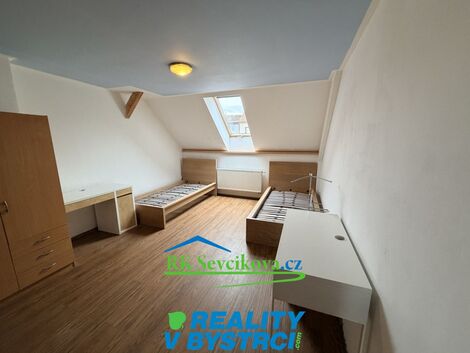 Nabízíme k pronájmu byt 3+1 v rodinném domě v Medlánkách na ulici Rysova. CP cca 82 m Jedná se o prostorné 3. patro s podkrovím rodinného domu - mezonet. V předsíni je k dispozici botník a věšák. Kuchyň (12 m) je vybavena moderní kuchyňskou linkou s vestavěnými spotřebiči - , elektrická trouba, mikrovlnná trouba, indukční varná deska a lednice s mrazákem, digestoř. Koupelna disponuje vanou, umyvadlem, zrcadlem a otopným žebříkem, pračka. WC je samostatné. V prvním pokoji (12,6 m) je k dispozici dvojlůžko s úložným prostorem a skříně. V druhém pokoji (17,6 m) je dvojlůžko a 2 prostorné skříně s policemi. Obývací pokoj (22,5 m) je umístěn nahoře v podkroví a je vybaven velkou rozkládací sedačkou, televizí, TV stolkem a konferenčním stolkem. Součástí bytu je komora / technická místnost. Vytápění zajišťuje vlastní kotel. K dispozici připojení k internetu - Wi-Fi. Vhodné pro 2 max 3 pracující osoby nebo studenty/studentky. Byt má samostatný uzamykatelný vstup po schodišti, společný s majiteli domu, kteří bydlí ve spodním patře. V okolí je kompletní občanská vybavenost - MŠ, ZŠ, obchody a služby, lékaři. MHD. Blízko do přírody. Pro více informací nás neváhejte kontaktovat. Nájem 20 000,- Kč + služby (3 000 - 4 000,-Kč) Kauce je ve výši 2 nájmů. Volné ihned. Pro možnost prohlídky nás neváhejte kontaktovat. <a href="https://www.eurobydleni.cz/byty/3_kk/praha-6/obec-ruzyne/pronajem/"><strong>Pronájem bytu 3+kk Praha 6, Ruzyně</strong></a>