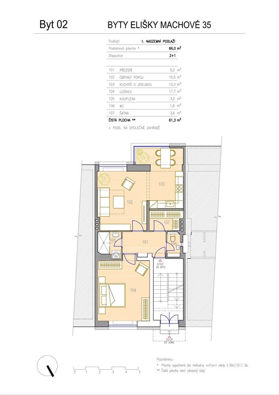 Ke koupi nabízíme moderní byt 2+kk o výměře 66 m2, umístěný v 1. patře bytového domu se čtyřmi jednotkami. Součástí prodeje je samostatná skladová kóje a možnost využívání společné zahrady orientované do klidného vnitrobloku. Byt je zcela nový, vzniklý v rámci kompletní rekonstrukce celého domu, a je připraven k okamžitému nastěhování bez dalších investic. Dispozice bytu nabízí světlý obytný prostor s kuchyňským koutem orientovaný do zeleně, ložnici směřující do tiché ulice a praktickou komoru s přípravou pro pračku a sušičku. Standard bytu zahrnuje okna s izolačními trojskly, přípravu pro instalaci předokenních žaluzií a kombinaci vinylových podlah a dubových parket, které dodávají interiéru nadčasový vzhled. Dům prošel kompletní stavební obnovou, včetně nových rozvodů elektřiny, vody, kanalizace a topení, stejně jako výměnou střechy, fasády, oken, dveří a podlah. Díky kvalitnímu zateplení jsou zajištěny velmi nízké provozní náklady na vytápění. Nemovitost se nachází ve vyhledávané části Brna Žabovřesky, v docházkové vzdálenosti od MHD, obchodů a služeb, a zároveň v blízkosti Wilsonova lesa, který nabízí ideální prostor pro volný čas i relaxaci. V případě zájmu o více informací nebo domluvení prohlídky mě neváhejte kontaktovat.